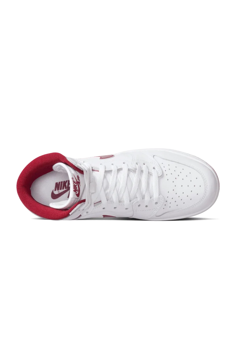 La versione 2024 ripropone fedelmente il design originale, caratterizzato da una classica palette di colori bianco e rosso. La tomaia, realizzata in pelle bianca traspirante, presenta perforazioni sulla punta e la linguette in mesh. Il logo, il colletto, la fodera interna e le ali sono impreziositi da accenti “Metallic Burgundy”. Il marchio “Nike Air” sulla linguetta e sulla suola in gomma riprende la tonalitร “Team Red”, creando un’estetica coesa. Il design senza tempo si conclude con un’intersuola bianca pulita.