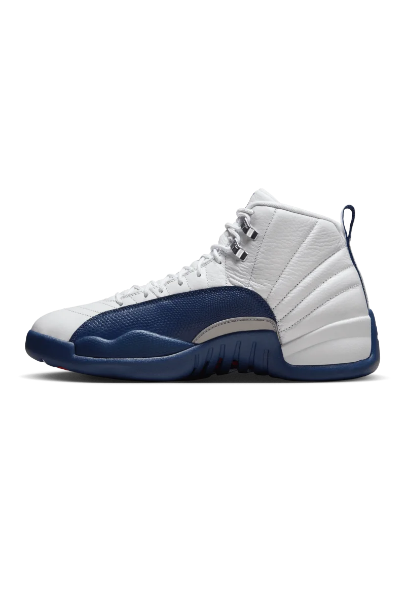 La sneaker mantiene il suo look classico con una combinazione di colori bianco, “French Blue”, argento metallizzato e “Varsity Red”. La tomaia รจ realizzata in pelle bianca di alta qualitร , che le conferisce un aspetto pulito e curato. Il parafango “French Blue” aggiunge un contrasto vivace, migliorando l’estetica complessiva della scarpa. I dettagli in argento metallizzato sono posizionati con cura sui pannelli laterali e sugli occhielli superiori, aggiungendo un tocco sottile ma vistoso. Un tocco di “Varsity Red” sul marchio sul tallone fornisce un accento audace, mentre il logo Jumpman sulla linguetta completa il design senza tempo.