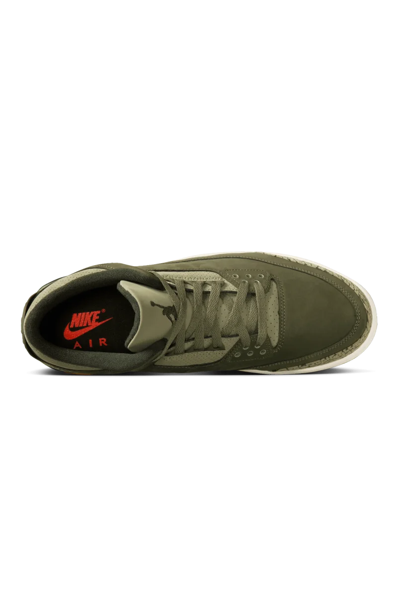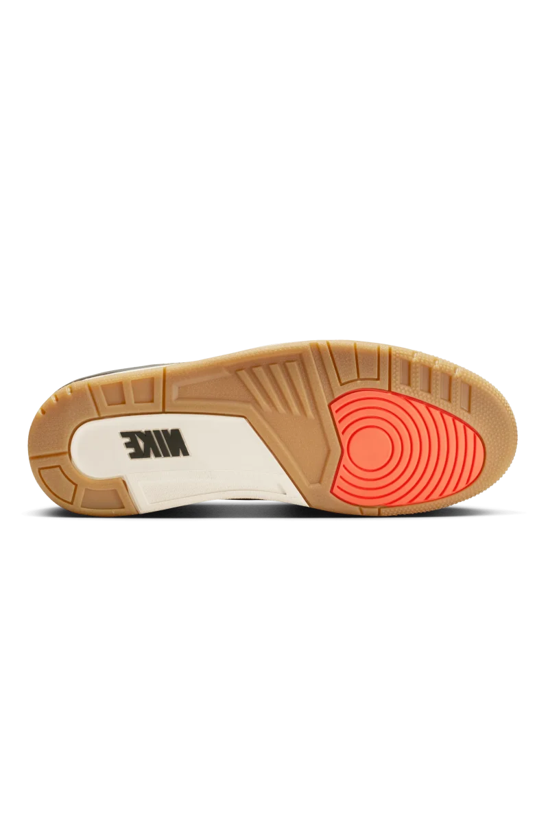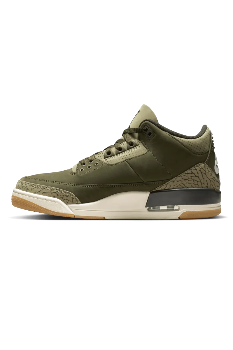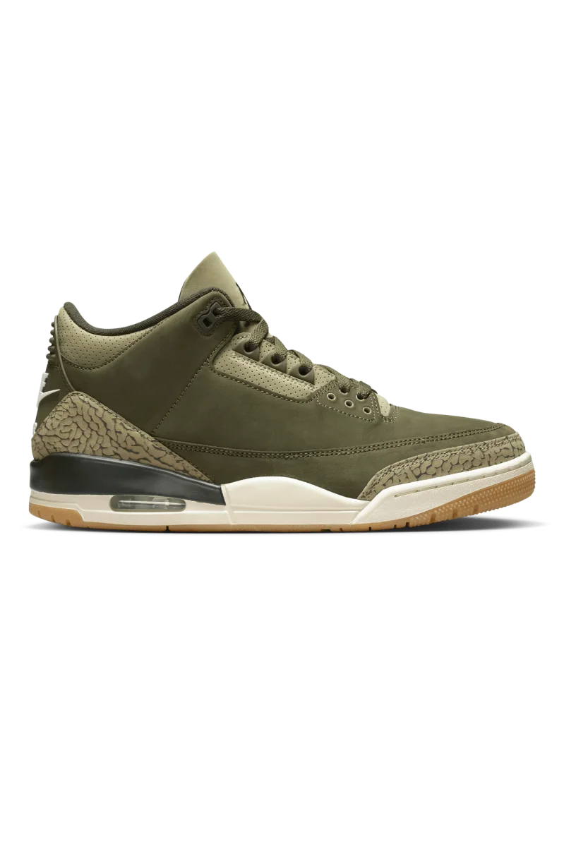 La sneaker presenta una combinazione di colori “Medium Olive”, “Sequoia”, “Neutral Olive”, “Sail” e “Total Crimson”. La tomaia รจ realizzata in nabuk, che le conferisce un look robusto ma elegante. L’iconica stampa elefante appare intorno alla punta e al tallone in un verde piรน chiaro, che si abbina alla palette di colori terrosi della scarpa. Inoltre, la scarpa presenta una suola in gomma. A completare il design, il classico marchio Nike Air impreziosisce il tallone, aggiungendo un tocco nostalgico.