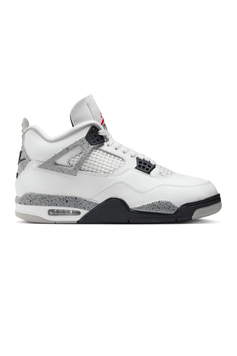 Questa Air Jordan 4 “White Cement” รจ caratterizzato da una tavolozza di colori senza tempo: “Summit White”, “Fire Red”, “Tech Grey” e nero. La sneaker ha una tomaia in pelle bianca, accentuata dal grigio con dettagli specchiati sugli occhielli e su parti dell’intersuola. Questi elementi sono completati dalla caratteristica struttura a rete della scarpa sui pannelli e sulla linguetta.