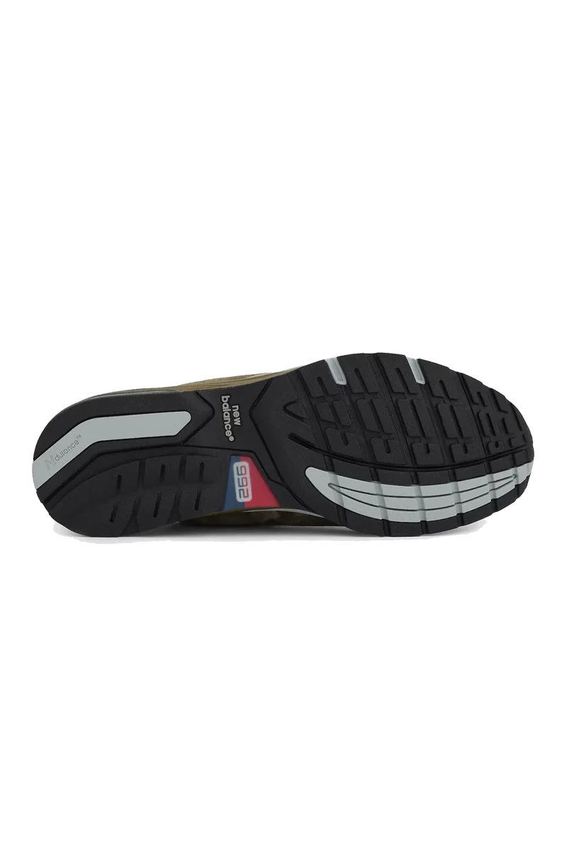 Presenta la classica tomaia in pelle scamosciata e mesh del modello 992. La pelle scamosciata marrone scuro รจ utilizzata per i pannelli laterali, la parte centrale del piede e la linguetta. Un rivestimento in mesh aumenta la traspirabilitร per il massimo comfort. Gli accenti riflettenti continuano a essere un elemento fondamentale per il modello 992 di New Balance. La maggior parte dell’intersuola ABZORB รจ di un sobrio colore oliva di ispirazione militare. La suola in gomma รจ nera. La scarpa fa parte della collezione Made in USA del marchio, che mette in risalto i materiali di alta qualitร e l’artigianato americano.