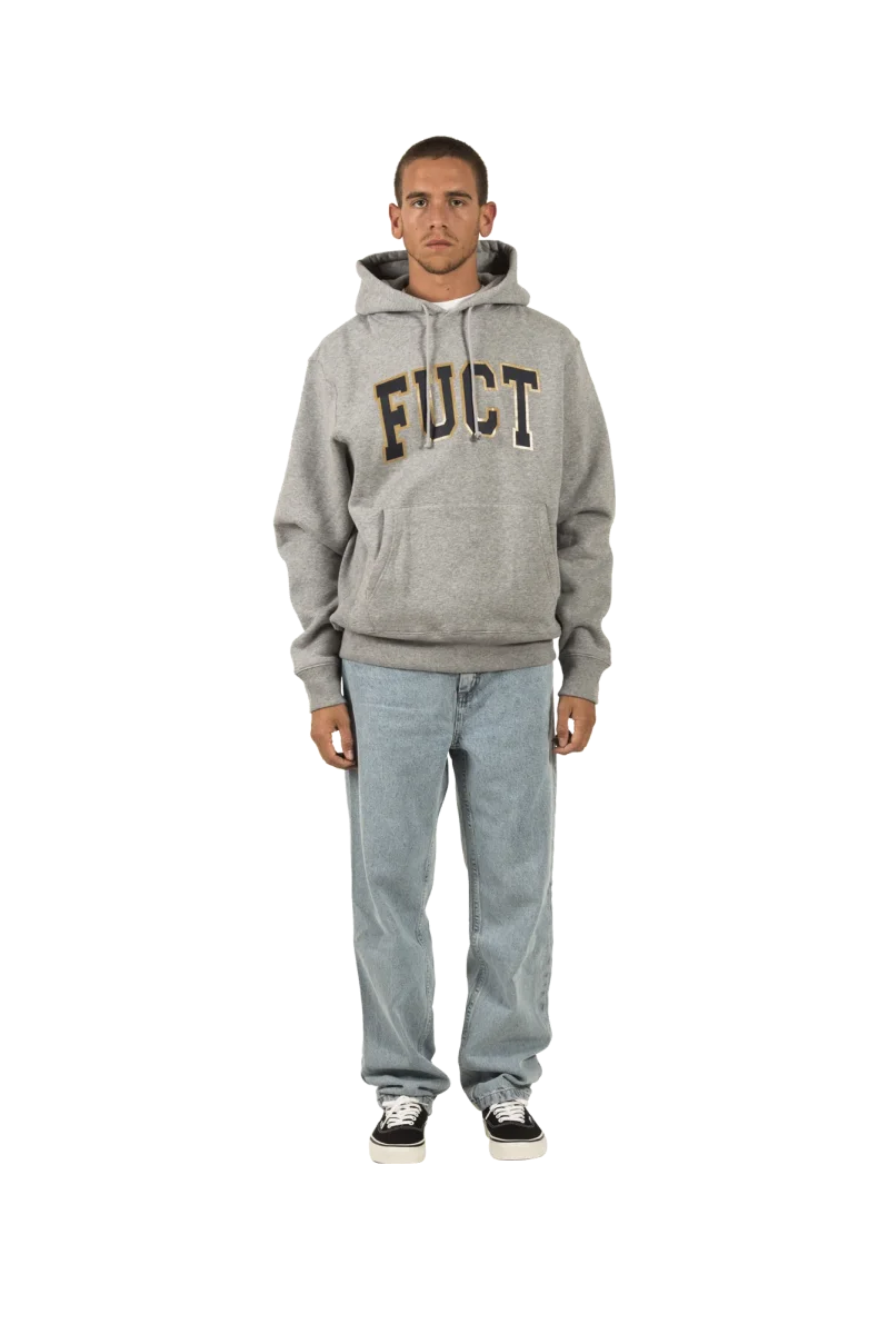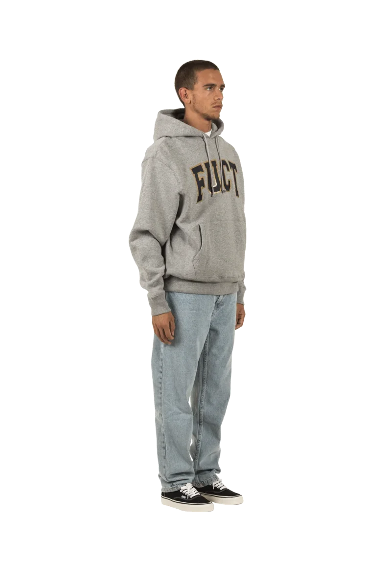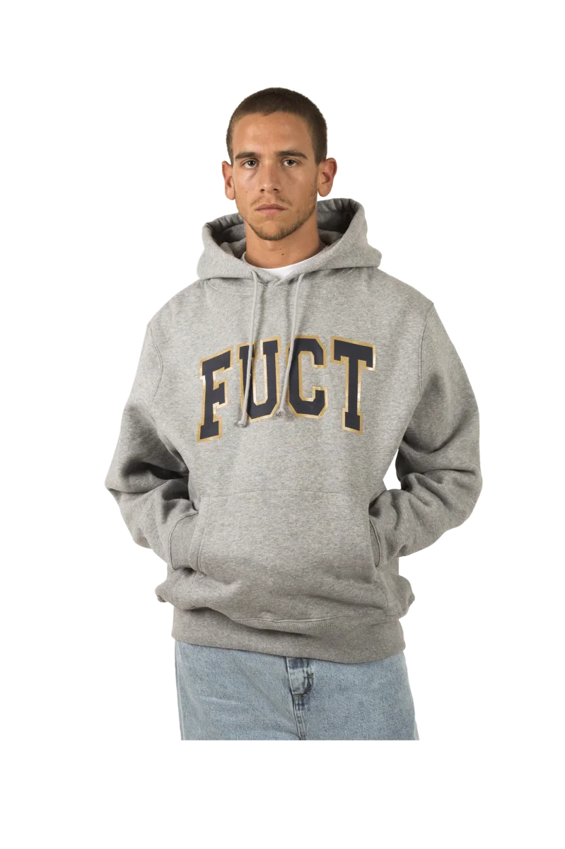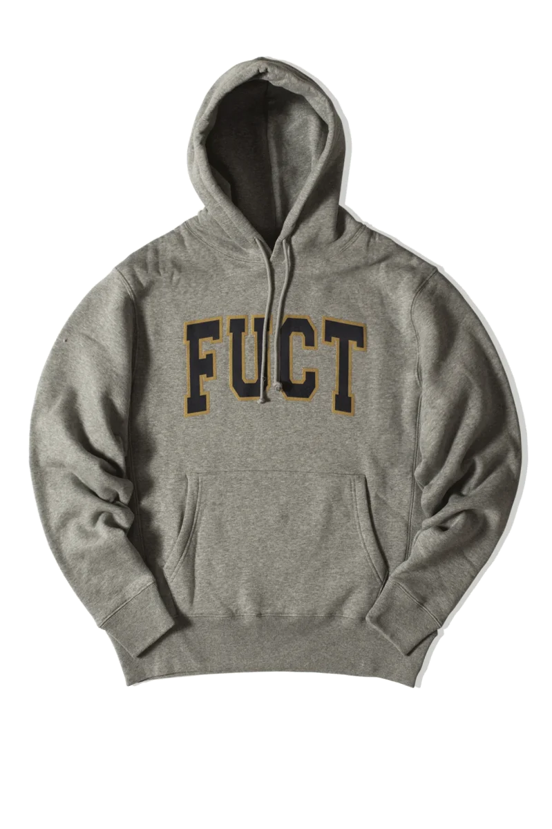 Fuct o โFriends U Canโt Trust%E2%80%9D รจ un brand streetwear fondato a Los Angeles in California da Erik Brunetti e Natas Kaupas. Pronunciato โfuck*d%E2%80%9D, il brand ha sempre utilizzato grafiche controverse, riguardanti sia temi politici sia religiosi. Ad oggi, dopo tre decadi di esistenza, viene considerato uno dei brand piรน di culto di tutti i tempi nel panorama streetwear. Questa felpa con cappuccio grigia presenta una tasca frontale e il logo del brand con un font molto simile a quello utilizzato dai college americani stampato sul petto.