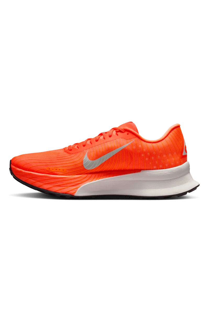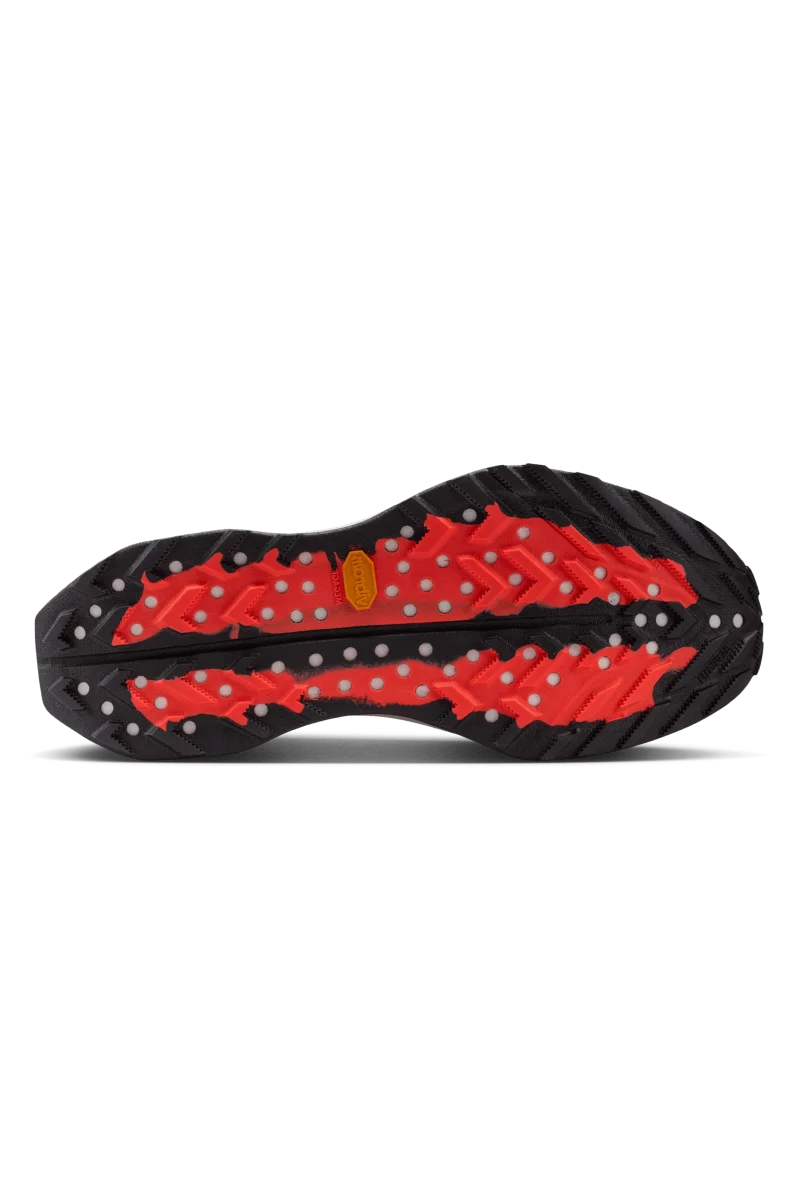 Le Ultrafly Trail utilizzano una tomaia piรน aperta e traspirante e una Flyplate che si flette invece di risultare rigida. L’ammortizzazione ZoomX garantisce velocitร e rimbalzo, mentre Vibram mantiene la presa sotto il piede. Sono anche piรน leggere di 13 grammi, con uno stack leggermente inferiore, ma il drop di 8,5 mm rimane invariato.