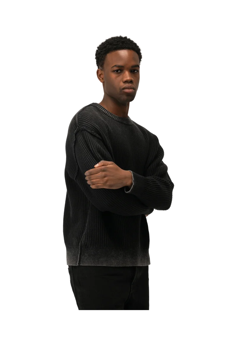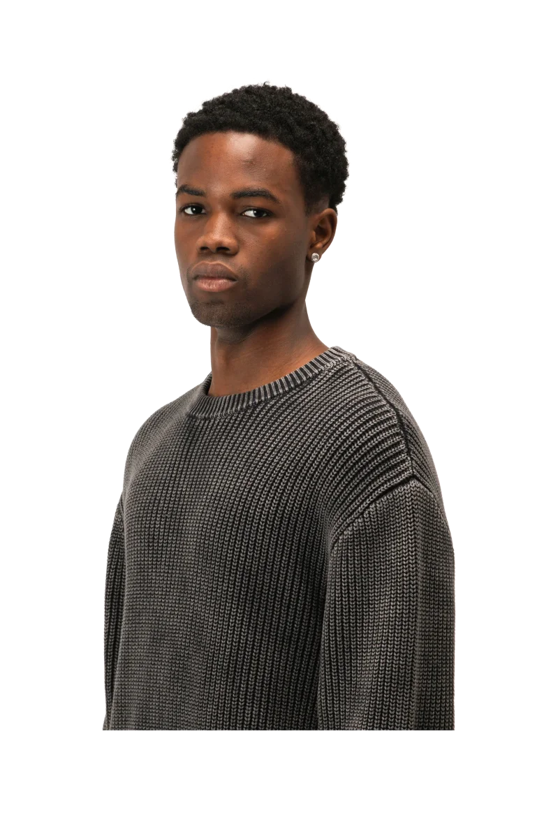 Maglione reversibile in cotone caratterizzato da una tintura acid wash che conferisce al capo una colorazione irregolare e un effetto vissuto.