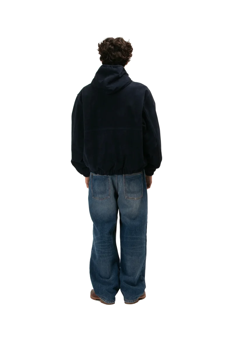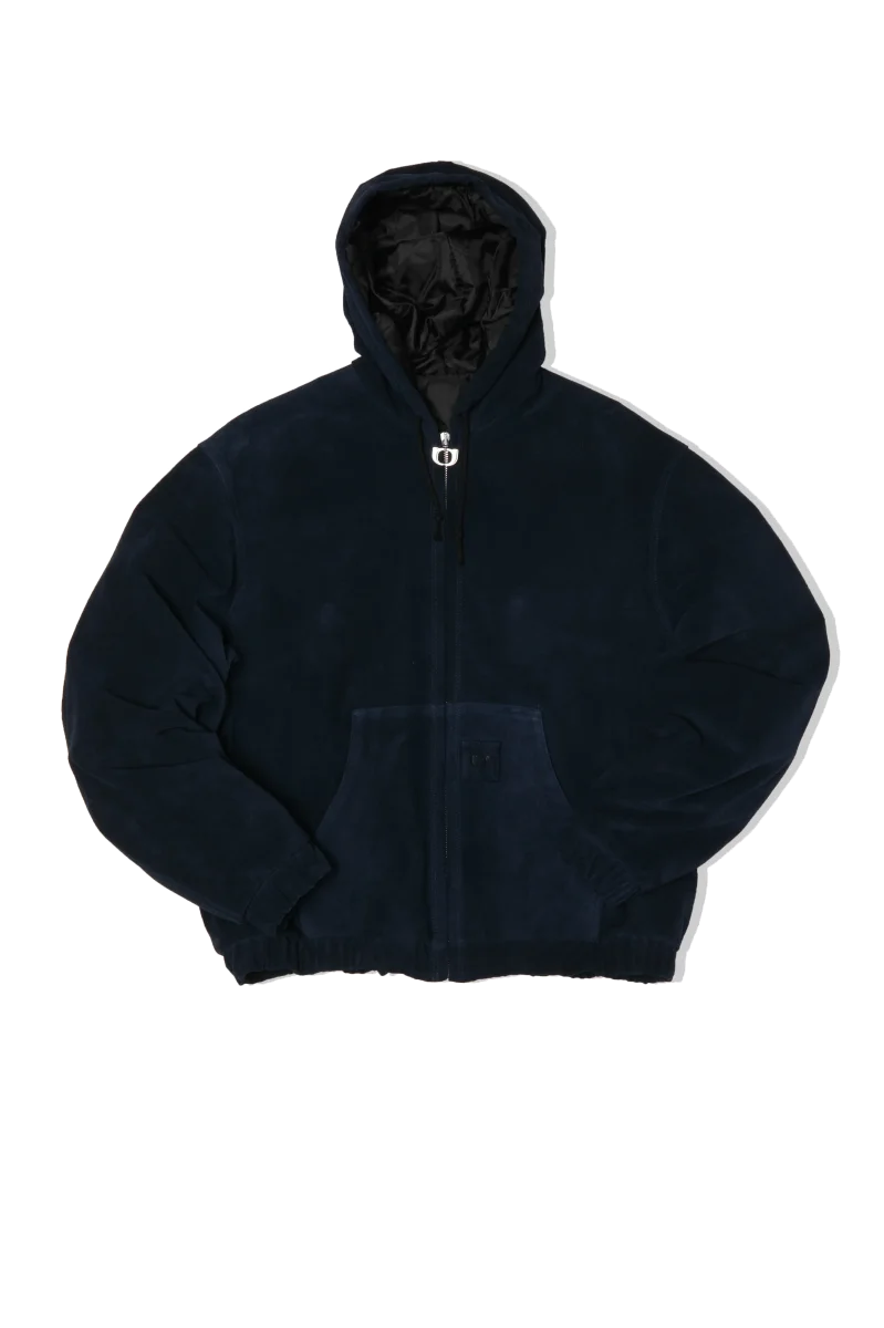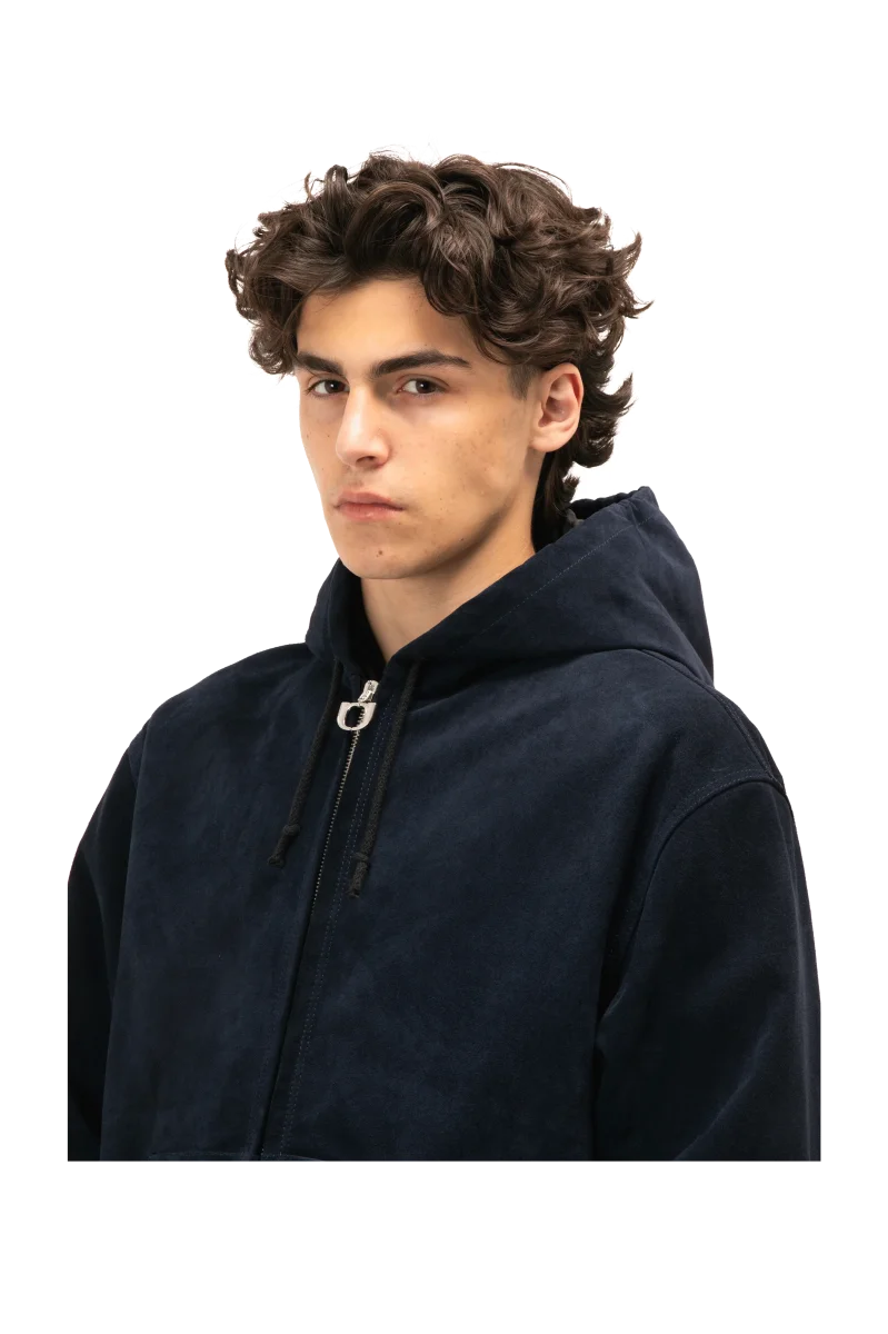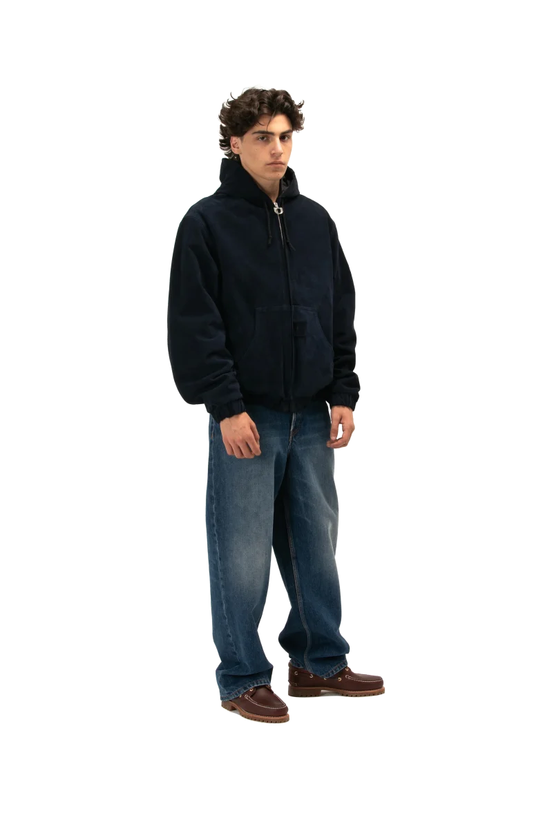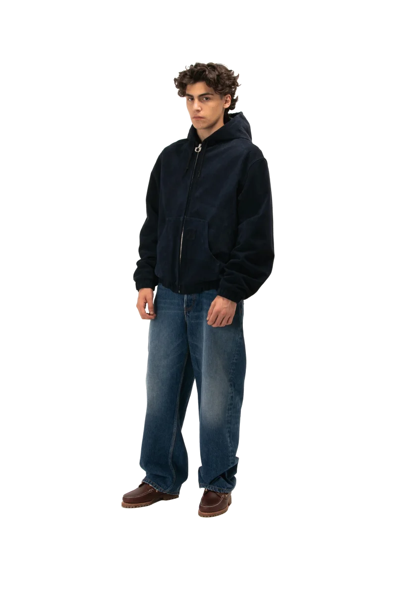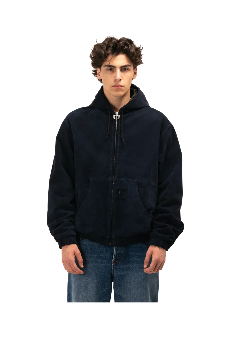 Questo bomber in crosta, realizzato in Italia con materiali di alta qualitร , presenta una vestibilitร  regolare ed รจ dotato di imbottitura interna e chiusura con zip frontale.