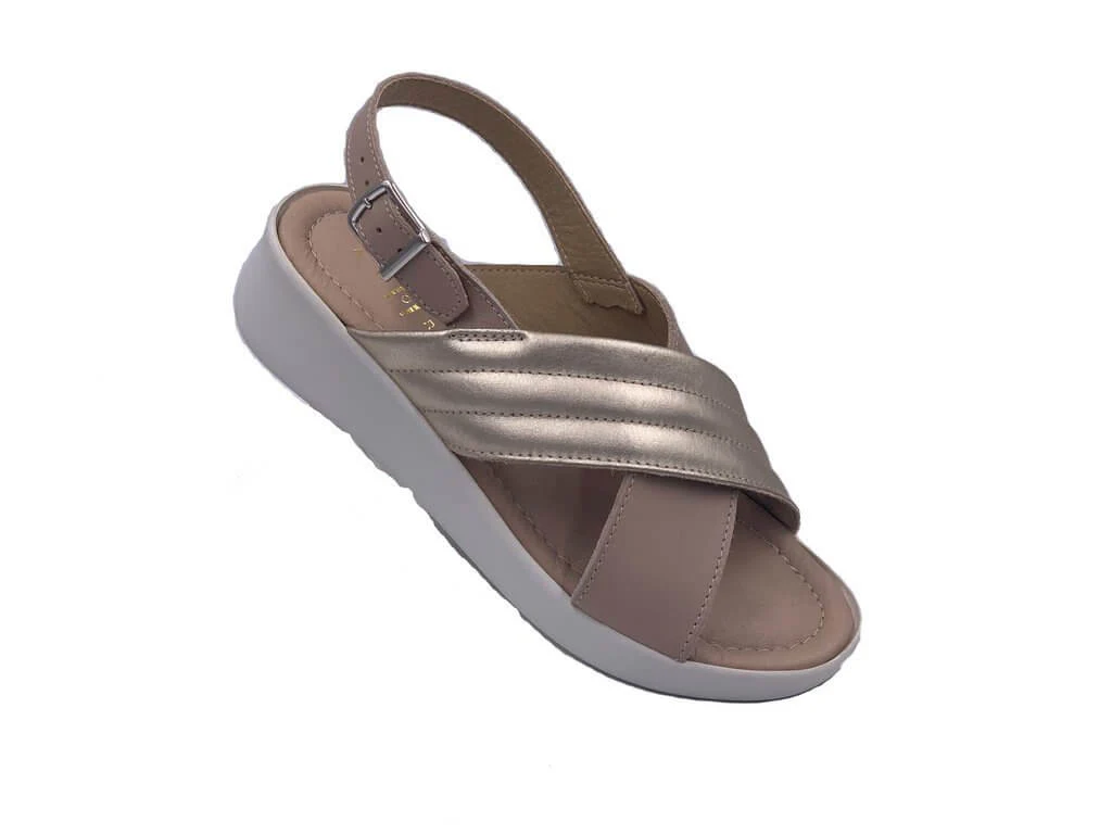 Sandalo da donna aperto Agorà. Tomaia con doppia fascia in pelle. Zeppa 4 cm. Chiusura con cinturino nella parte laterale della scarpa. Sottopiede in vera pelle. Sandalo ideale per le giornate calde e primaverili. Adatto ad un qualsiasi genere di outfit sportivo o casual. Disponibile in bianco o beige. Tomaia – Esterno: Pelle Rivestimento – […]
