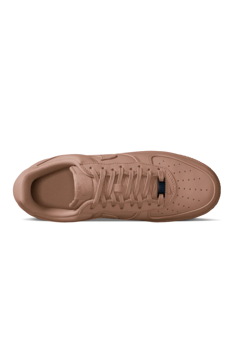 La pelle scamosciata beige lucida ricopre ogni centimetro della scarpa. La differenza piรน evidente รจ l’assenza del logo Nike Air sulla linguetta del tallone. Questo รจ un segno evidente della maggiore raffinatezza di questa versione. Ma i classici dettagli delle AF1 sono ancora presenti, tra cui l’etichetta ricamata sulla linguetta, il mini Swoosh alla base del sistema di allacciatura e la scritta “AIR” scolpita sull’intersuola. Si tratta di una rivisitazione semplice ma lussuosa delle OG Air Force 1.