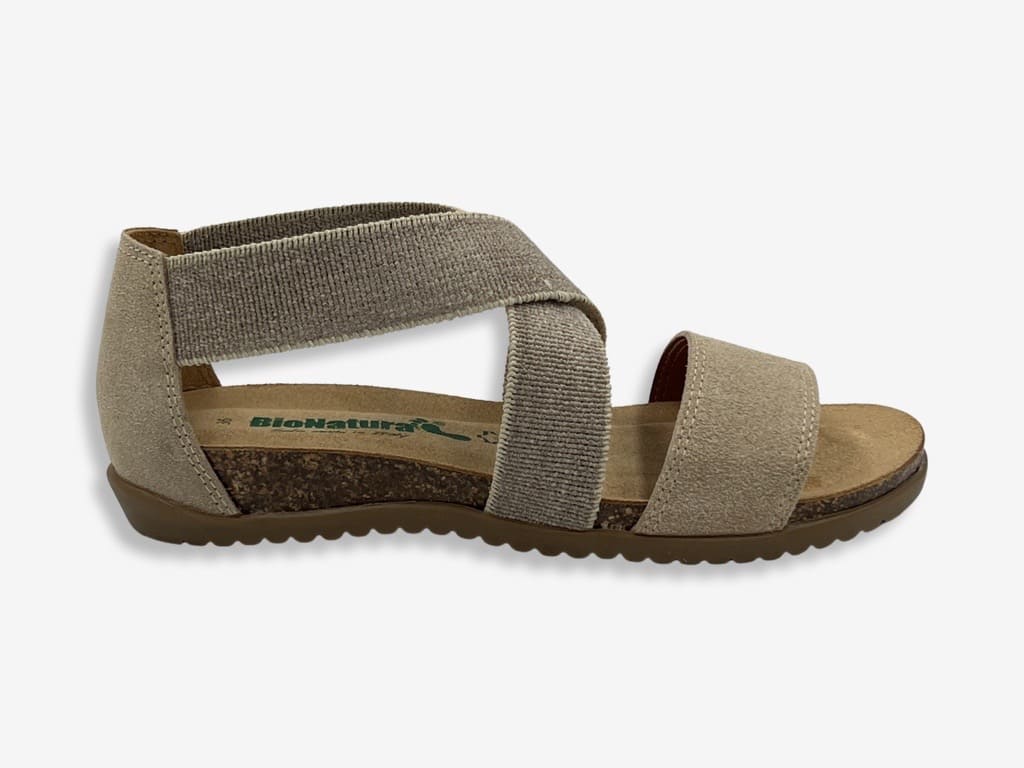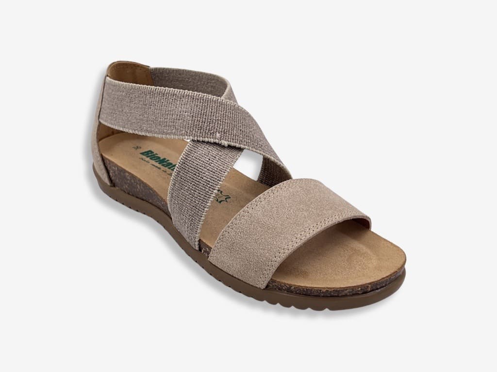 Bionatura 34 A 825 sandalo da donna Made in Italy. Sandalo scamosciato BioNatura, con fascia a incrocio elasticizzata, ideale per uno stile casual e moderno. Prodotto 100% made in Italy