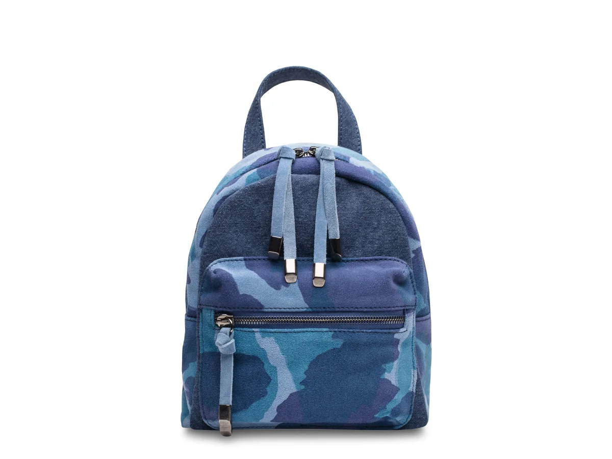 Designed with Boscaโs highest standards and made by hand in our favorite Italian workshop. Every bag is made by hand and touched by a member of the family. The cotton canvas is relaxed but trim-looking and stain resistant. The leather is a soft, suede with a color-fast fun camo print (blue/blue/blue, or tan/tan/grey.) This bag is soft and squishable but will hold its shape nicely too. The straps are matching fabric and are designed to allow you to let the bag hang loosely off your shoulder(s) or snug against your back. Smooth-gliding zippers and zip pull ends in a grey-nickel finish provide the accents. Inside is one open easy-access pocket and one secure zipper pocket. Super light-weight, and just big enough for all the little things you want to have with you when you leave the house in the morning, or out for the evening.