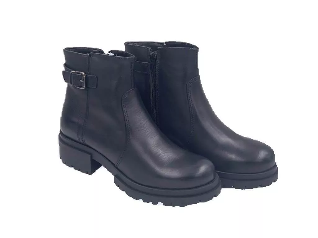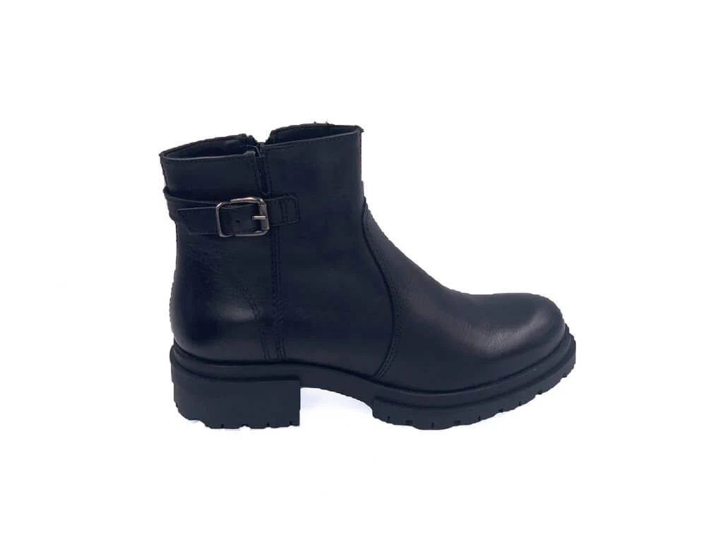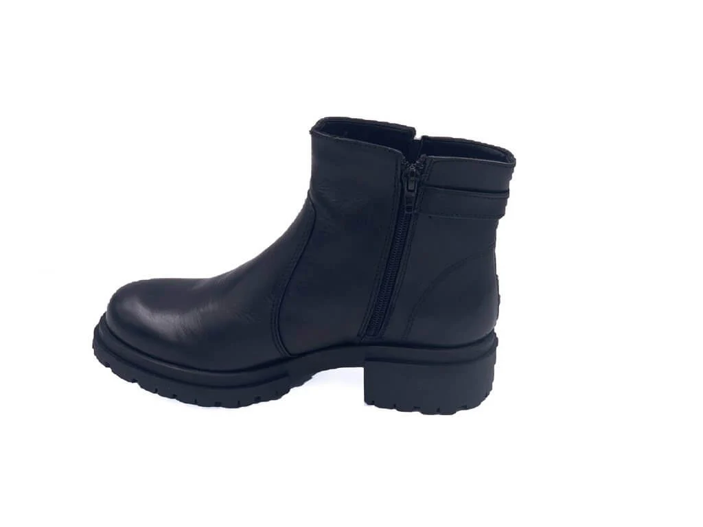 Stivaletto CF con suola leggera multistrato, scarpa interamente in pelle con linguette in pelle, chiusura con cinturino e zip interna. Disponibile colore nero.