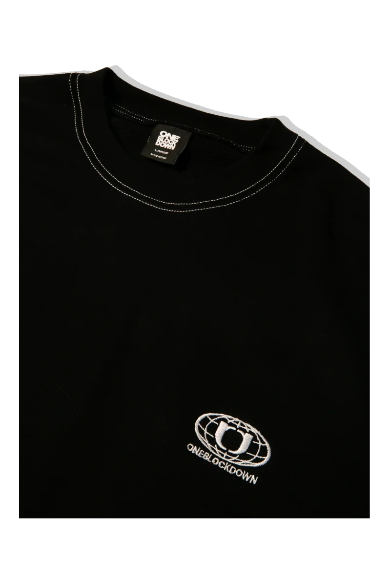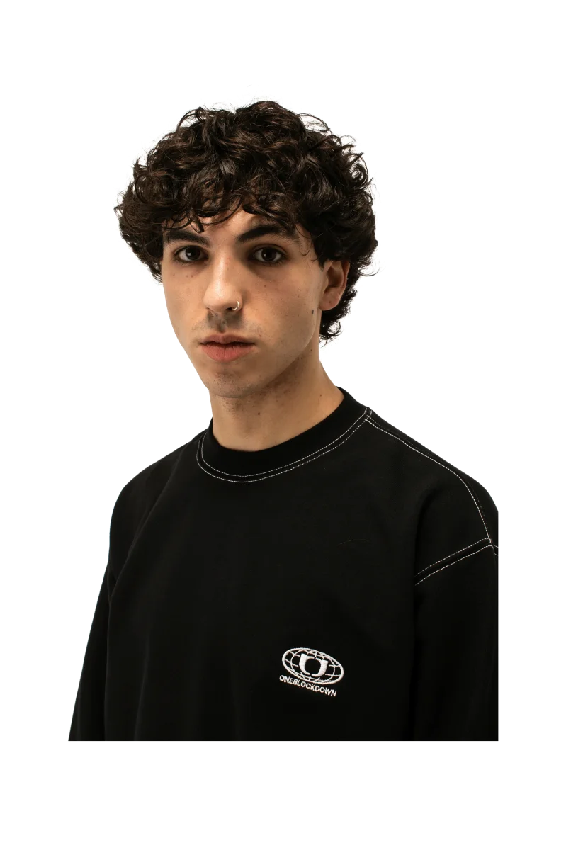 Felpa girocollo, disponibile in due varianti colore, grigio e nero. Vestibilitร regolare, con piccolo logo One Block Down ricamato a destra.