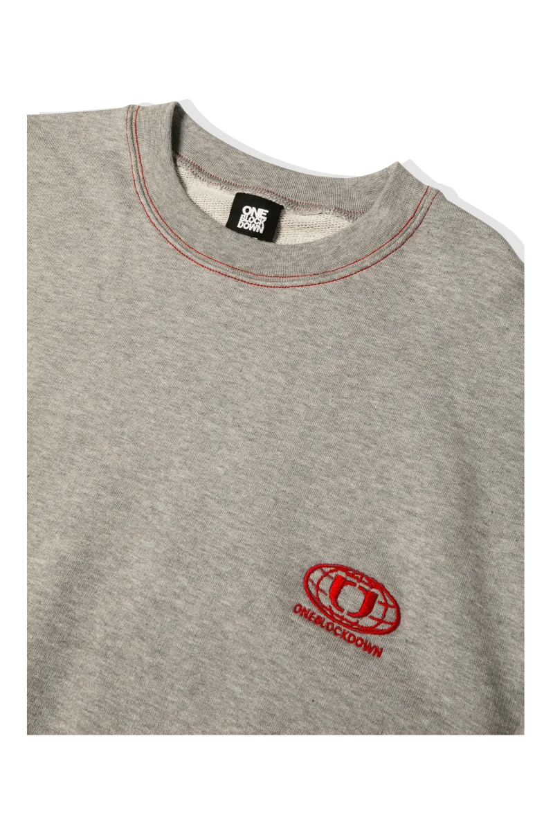 Felpa girocollo, disponibile in due varianti colore, grigio e nero. Vestibilitร regolare, con piccolo logo One Block Down ricamato a destra.