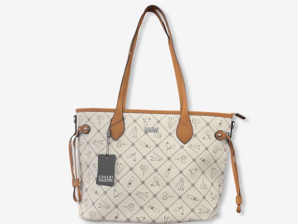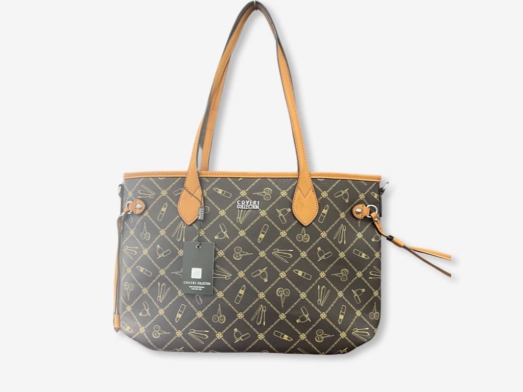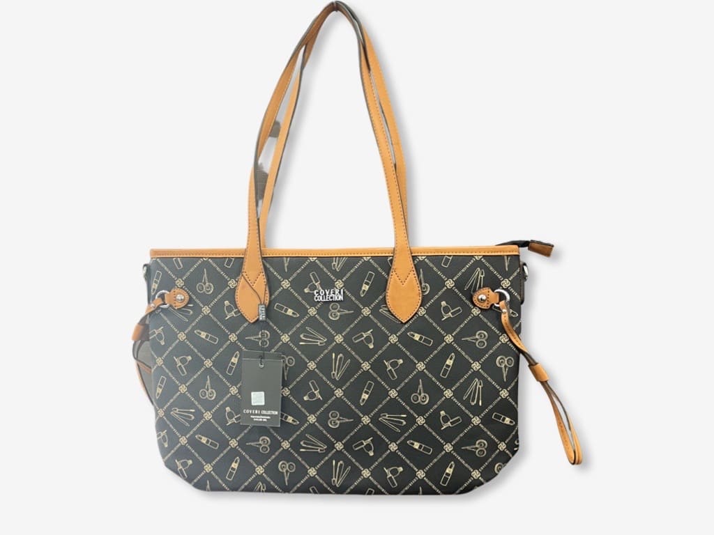 Coveri 5189-1 shopper bag donna della nuova collezione Coveri 2023. Borsa realizzata in ecopelle logata con dettagli in metallo e logo in acciaio, una shopping bag dotata di tracolla rimovibile. Borsa capiente con piccola tasca posteriore e tasca centrale con chiusura a zip, interno con sacca in fodera e taschini laterali.