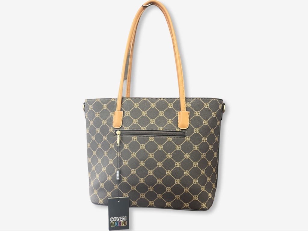 Coveri CW4756-NG shopper bag donna della nuova collezione Coveri 2023. Borsa realizzata in ecopelle logata con dettagli in metallo e logo in acciaio, una shopping bag dotata di tracolla rimovibile. Borsa capiente con piccola tasca posteriore e tasca centrale con chiusura a zip, interno con sacca in fodera e taschini laterali.