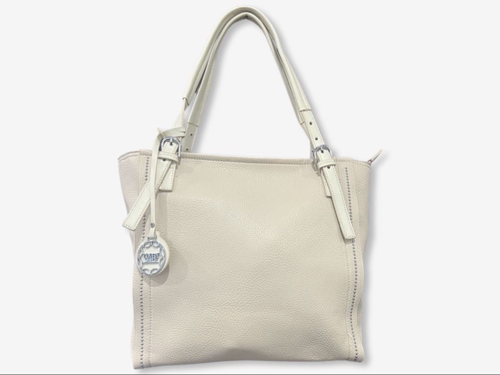 Coveri CW5197-N shopper bag donna della nuova collezione Coveri 2023. Borsa realizzata in ecopelle pregiata con dettagli in metallo lungo le cuciture, una shopping bag dotata di tracolla rimovibile. Borsa capiente con piccola tasca posteriore e tasca centrale con chiusura a zip, interno con sacca in fodera e taschini laterali.