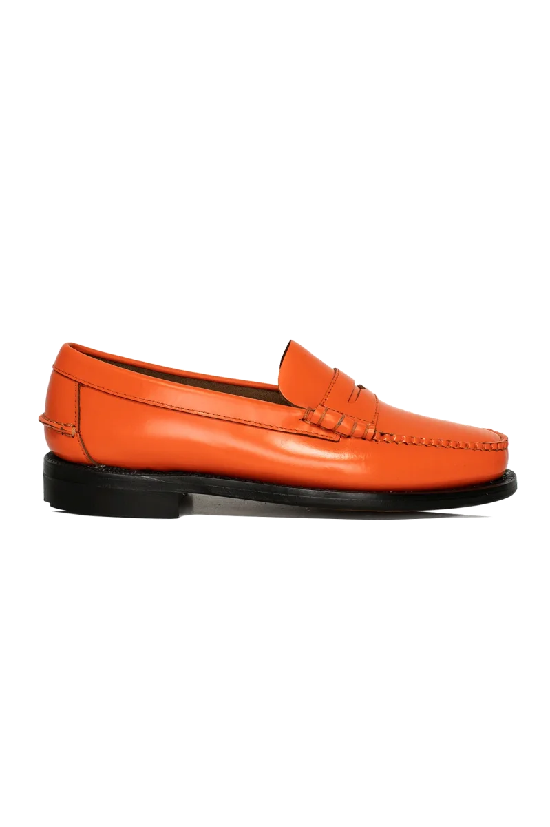 Realizzato in pelle pieno fiore spazzolata liscia per durare nel tempo e cucito a mano con la migliore lavorazione artigianale, questo penny loafer beefroll รจ un mocassino 4 stagioni con tomaia in pelle sfoderata, tacco modellato in gomma e suola in cuoio trattato per offrire resistenza, flessibilitร  e impermeabilitร . I mocassini “Dan” sono un omaggio alla passione dei fondatori del marchio Sebago.