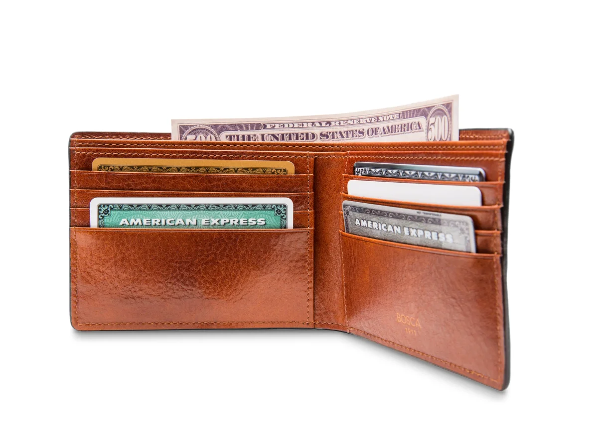 There are a total of eight card slots, offering plenty of room for IDs, credit cards, business cards and more. There are two vertical pockets for more card and receipt storage. The cash well is split into two sections for even more organizational possibilities.