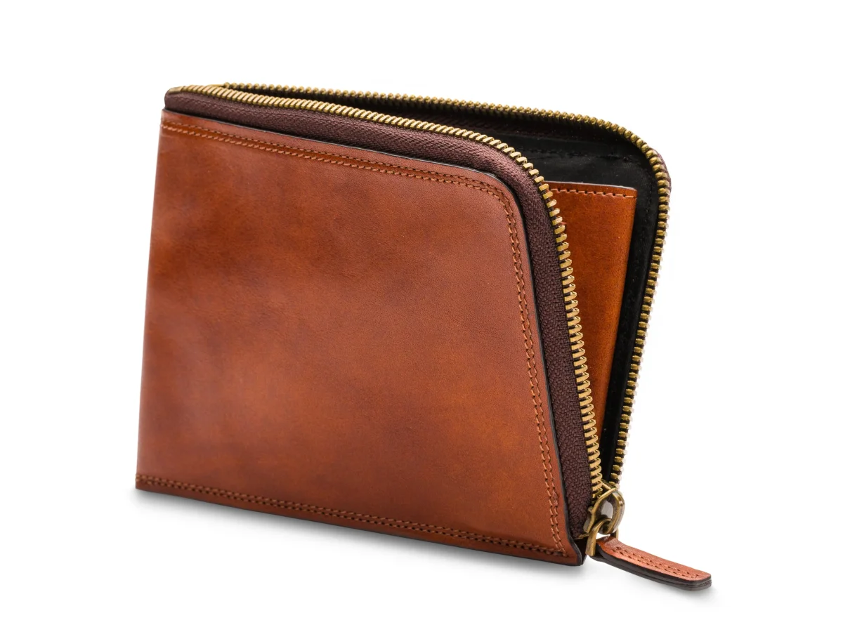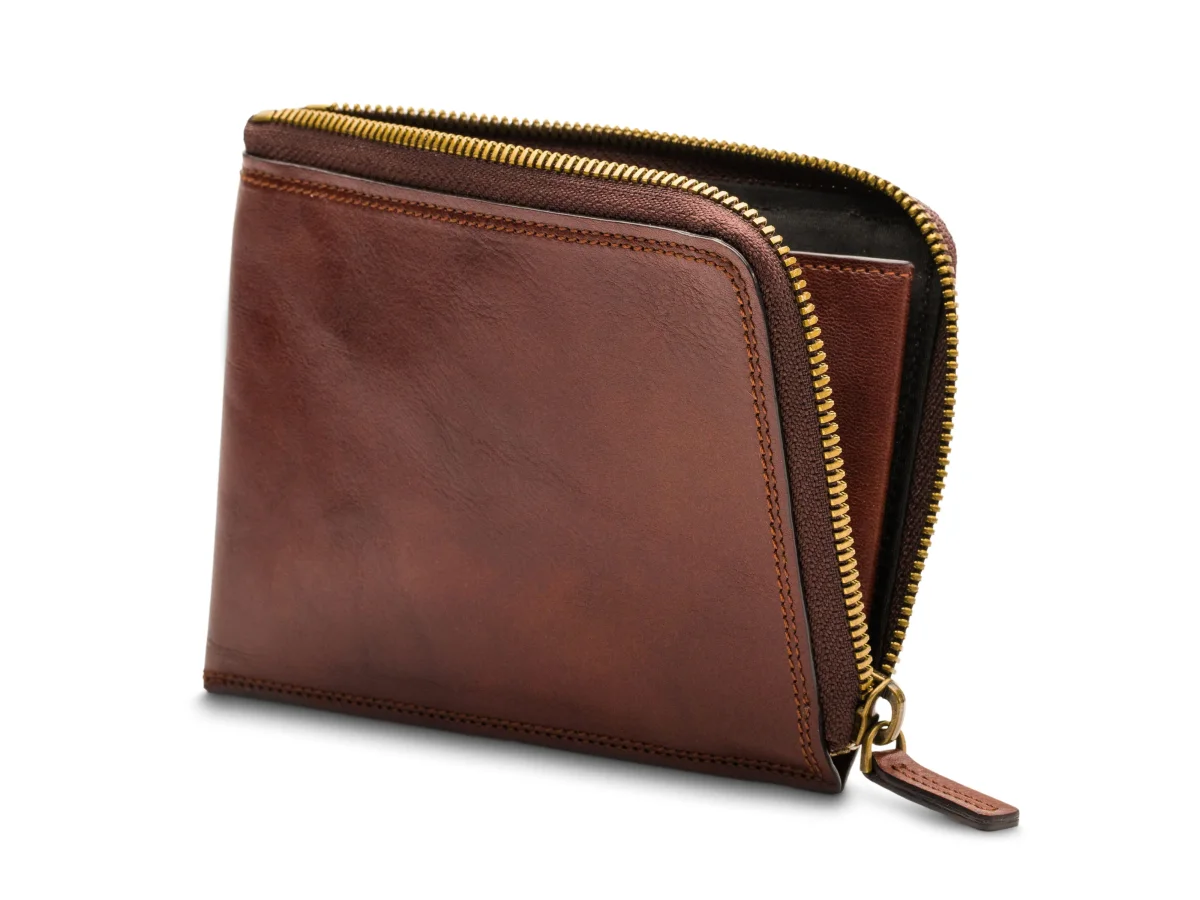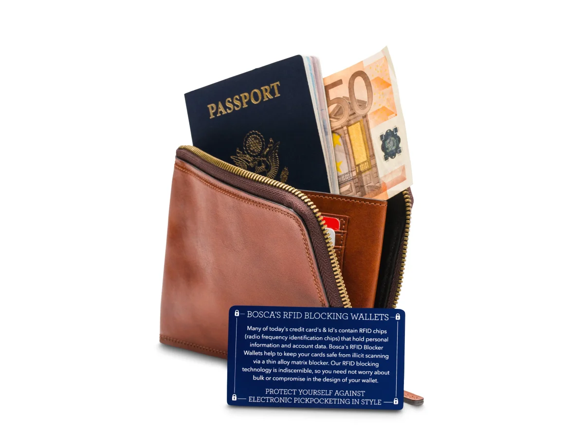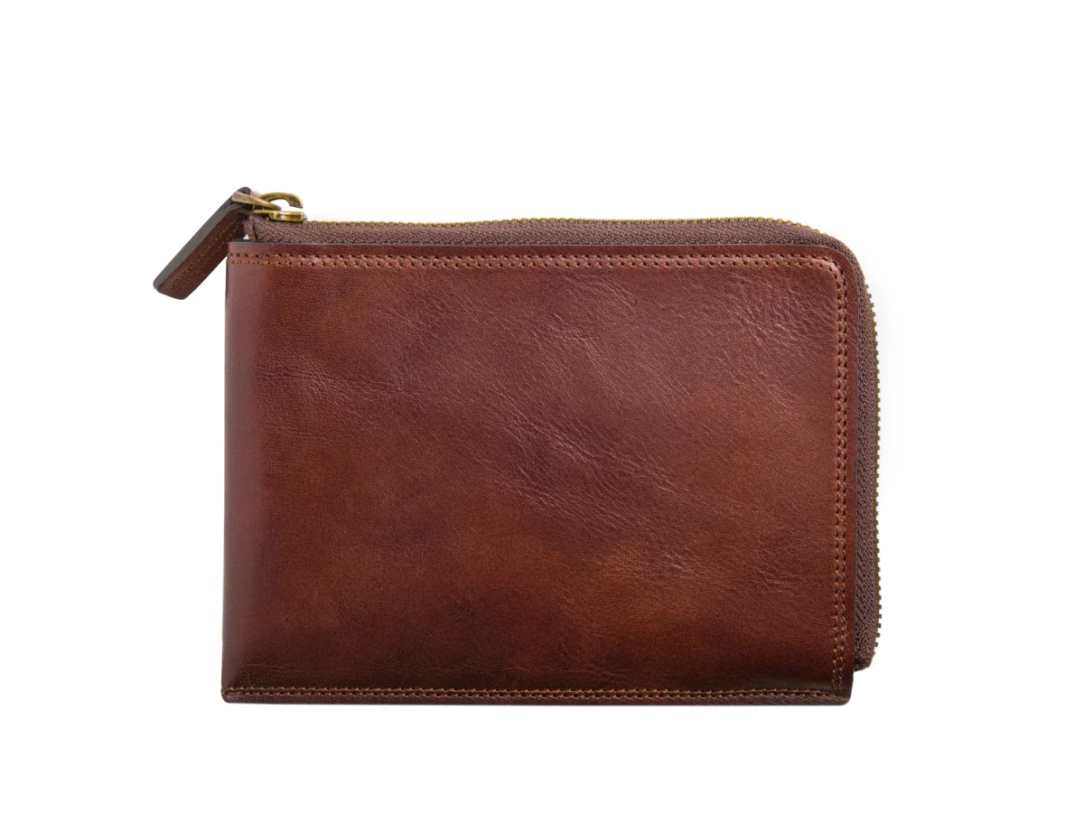 The Zip Passport Wallet is a must have when traveling. No more rummaging through carry-ons, pockets, and jackets just to get out your passport or travel documents. The Zip Passport Wallet gives you one space to carry it all. It is tall enough to handle Euros and other global currencies. It has a beautiful antique brass finish zipper that will keep your documents and coins in place. A center leather pocket has two card pockets and will also hold your passport securely. Afraid of having your credit card information stolen? Don’t be, RFID technology has been built into the lining keeping you safe. Just like the rest of our Dolce line, the Zip Passport Wallet has the hallmark double stitch and raw edge construction. This wallet will only become more beautiful over the years because Dolce leather wears in, not out.