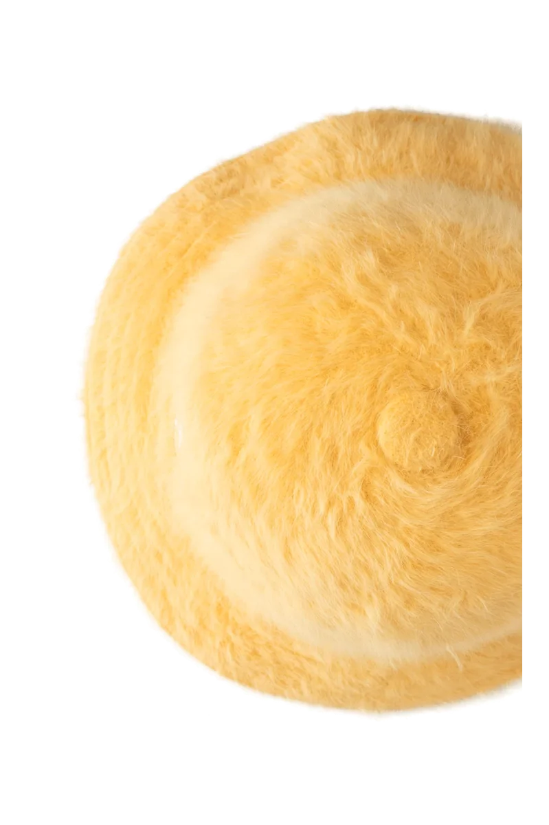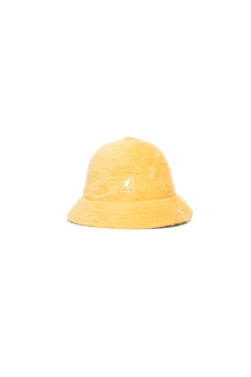 Questo cappello giallo in lana angora presenta il classico look bucket hat reso iconico da questo brand, altre al logo del canguro ricamato sul fronte in bianco. Kangol รจ un brand inglese nato nel 1938, famoso principalmente per i propri cappelli. Il nome deriva dal loro iconico logo, un canguro, talmente iconico che in passato erano noti come “cappelli del canguro”. Negli anni โ60 erano molto alla moda soprattutto in Inghilterra e venivano spesso visti su celebritร come la Principessa Diana e i Beatles. Nei decenni a seguire รจ diventato un’ icona della scena hip-hop, utilizzato da artisti del calibro dei Run-DMC, Notorious B.I.G. e LL Cool J.