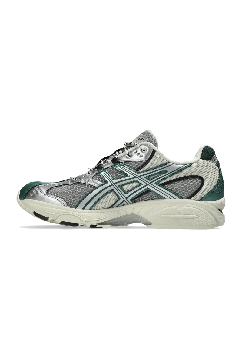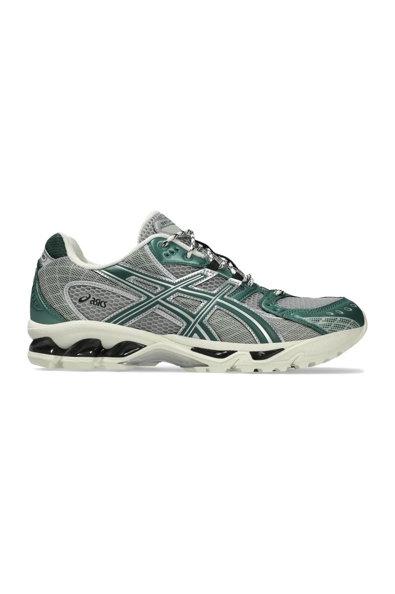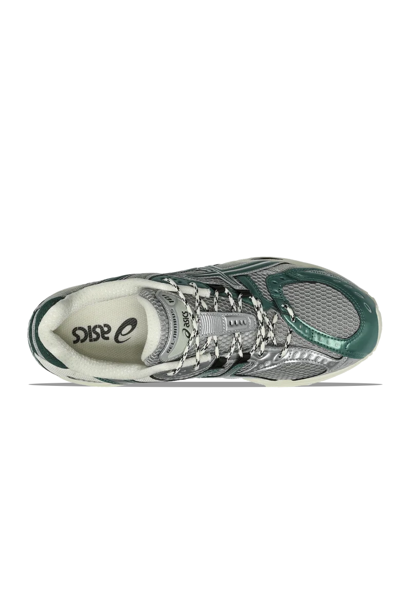 La GEL-Nimbus 10.1 “Silver/Green Metallic” presenta una tomaia in mesh grigio traspirante, valorizzata da sovrapposizioni in argento metallizzato e verde. Questi dettagli conferiscono alla scarpa un aspetto futuristico, mentre le suole color “Sail” offrono un contrasto di ispirazione vintage. Inoltre, la caratteristica ammortizzazione GEL nera offre un comfort superiore, rendendola perfetta per le corse di lunga durata o per essere indossata tutto il giorno. Progettata per i climi piรน freddi, questa sneaker รจ dotata di lacci ispirati agli scarponi, che aggiungono durata ed estetica robusta.