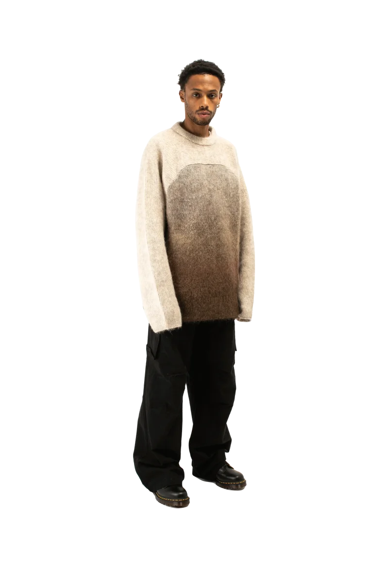 ### Maglione Arcobaleno Sfumato Avvolgiti nel comfort lussuoso del Maglione Arcobaleno Sfumato di ERL. Realizzato in Italia, questo pregiato capo in maglia combina la morbidezza del mohair al calore della lana, offrendo un’esperienza sublime ad ogni indosso. Il suo design unico a gradiente passa dolcemente da tonalitร scure alla base a sfumature piรน chiare in alto, rendendolo un’aggiunta degna di nota al tuo guardaroba. Il maglione presenta una vestibilitร rilassata e leggermente oversize, con maniche lunghe e un classico scollo rotondo, perfetto per abbracciare quel vibe accogliente e chic. Che tu stia vestendo per una giornata fuori o per una serata rilassata a casa, questo capo versatile si abbina facilmente a jeans o pantaloni comodi, aggiungendo un tocco di sofisticata semplicitร al tuo ensemble. Realizzato con una composizione premium di 50% Mohair, 26% Poliestere, 16% Lana e 8% Acrilico, garantisce durabilitร duratura mantenendo una sensazione morbida sulla pelle. Eleva il tuo stile e rimani al caldo nei giorni piรน freschi con questo essenziale capo in maglia. **Caratteristiche del prodotto:** – Fatto in Italia – Design sfumato per un look unico – Vestibilitร rilassata e leggermente oversize – Maniche lunghe e classico scollo rotondo – Tessuto premium: 50% Mohair, 26% Poliestere, 16% Lana, 8% Acrilico – Si abbina bene con jeans e pantaloni comodi Scopri un comfort e uno stile ineguagliabili con il Maglione Arcobaleno Sfumato, l’aggiunta perfetta alla tua collezione di maglieria.