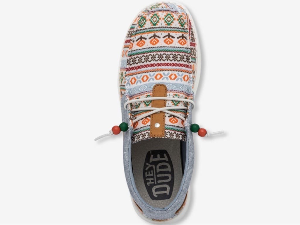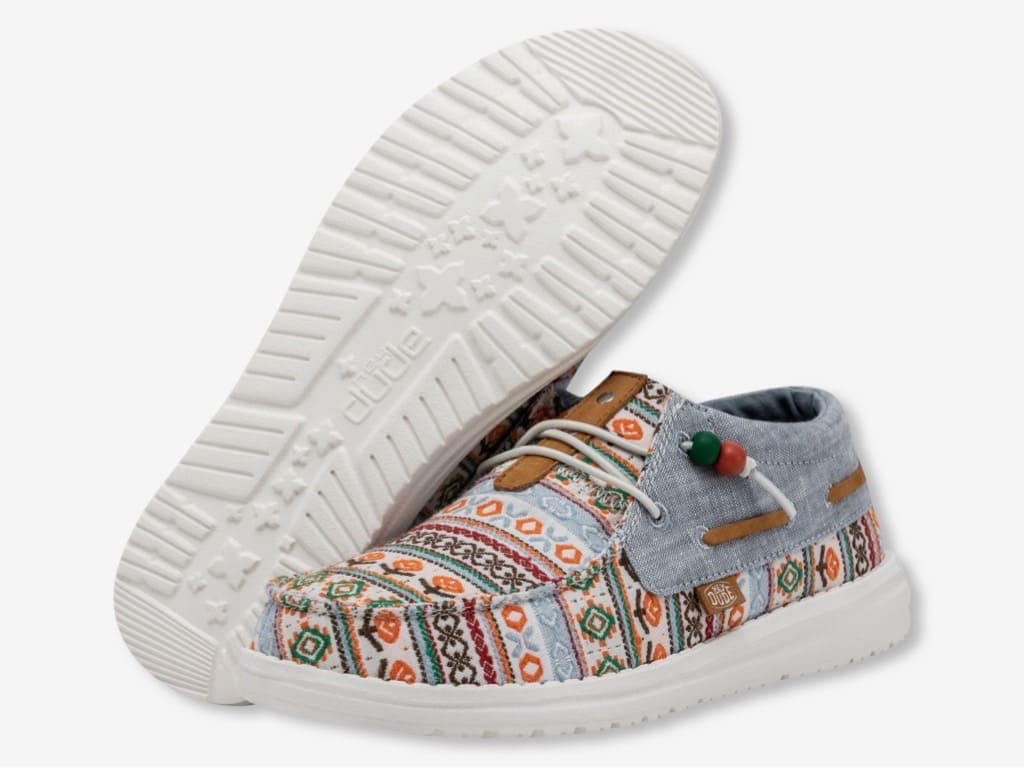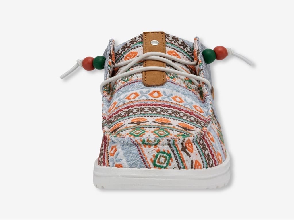 HEYDUDE Ellie Festival, un mocassino da donna della nuova collezione HEYDUDE 2023. Un mocassino dal design mid-cut e dallo stile slip-on, ideale per la bella stagione ma da indossare tutto l’anno. I dettagli di ispirazione boho-chic e gli elementi in pelle si fondono su una tomaia in misto cotone per offrire un comfort che non passa inosservato. Rifinito da una suola ultraleggera con lacci elastici e senza stringhe, per accompagnarti ovunque per tutto il giorno.