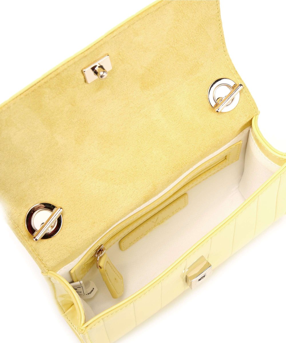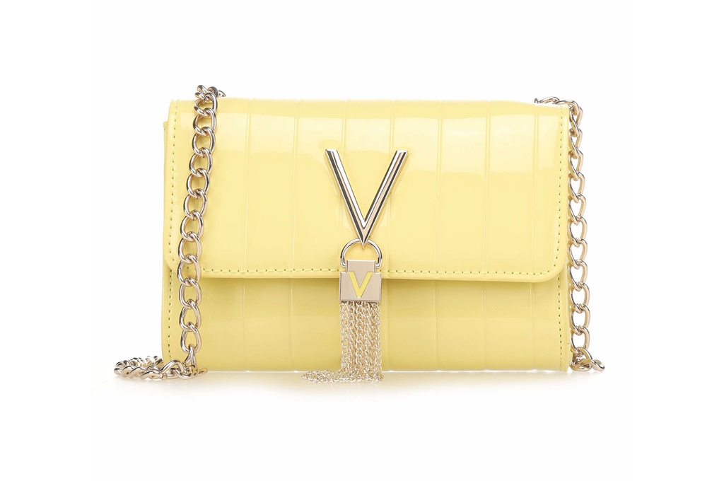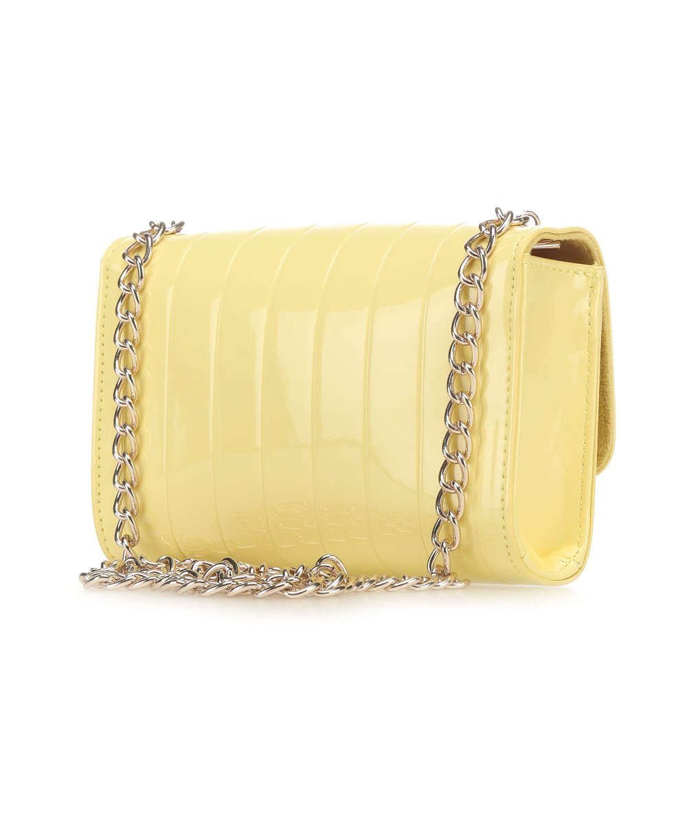 Linea BONGO Cod: VBS3XK03 Dimensioni: 17 x 11 x 4 cm Colore: Giallo Limone Borsa pochette con logo a vista Si chiude con la clip calamita Interno in tessuto e tasca zip Tracolla lunga 120 cm Materiale: lucido