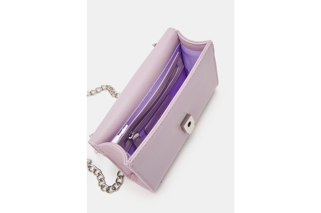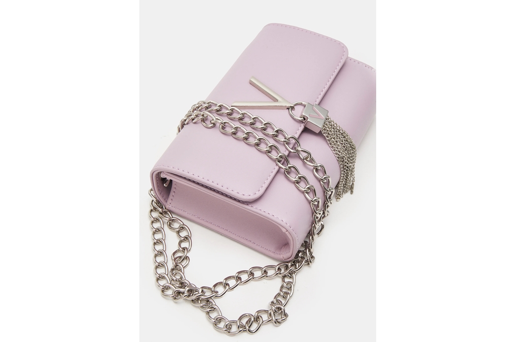 Linea DIVINA NA Cod: VBS3KC03 Dimensioni: 17 x 11 x 4 cm Colore: Lilla Esterno materiale liscio nappato interno tessuto con tasca zip Borsa con tracolla 110 cm Materiale: ecopelle
