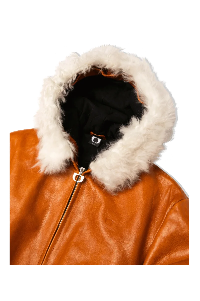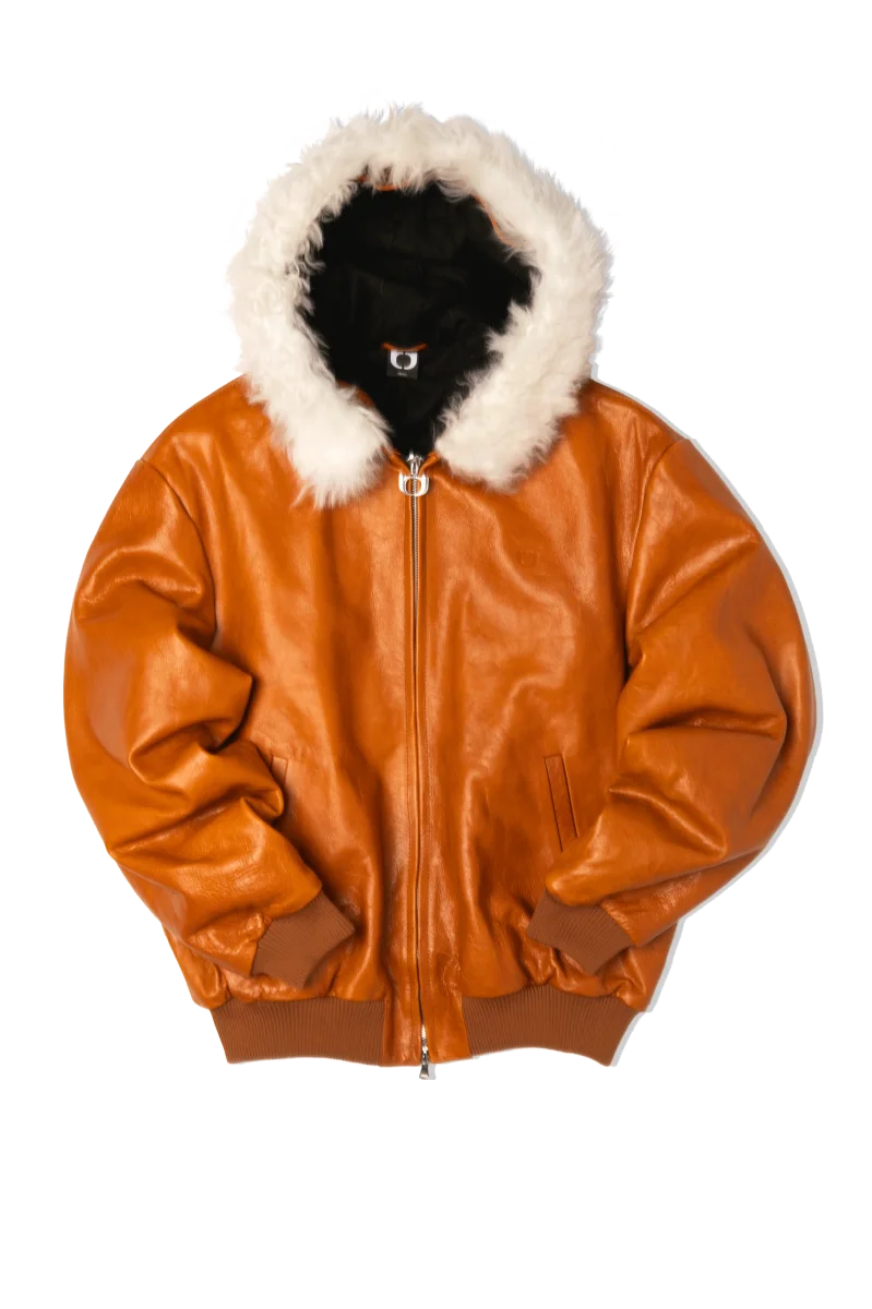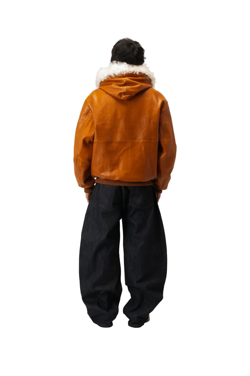 Pull-Up Leather Zip-Up Padded Hoodie