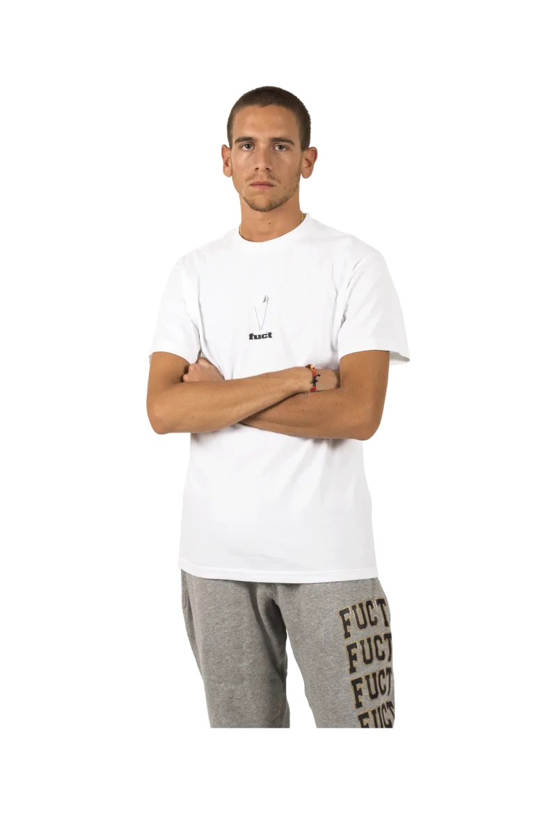 Fuct o โFriends U Canโt Trust%E2%80%9D รจ un brand streetwear fondato a Los Angeles in California da Erik Brunetti e Natas Kaupas. Pronunciato โfuck*d%E2%80%9D, il brand ha sempre utilizzato grafiche controverse, riguardanti sia temi politici sia religiosi. Ad oggi, dopo tre decadi di esistenza, viene considerato uno dei brand piรน di culto di tutti i tempi nel panorama streetwear. Questa t-shirt bianca presenta una grafica con uno spillo e il logo del brand stampato sul petto.