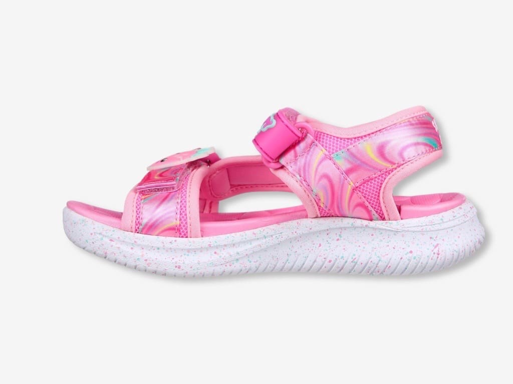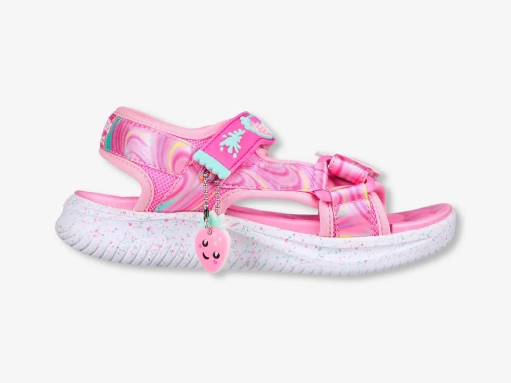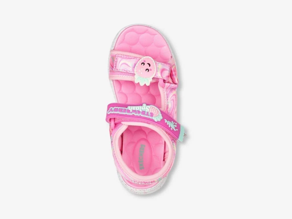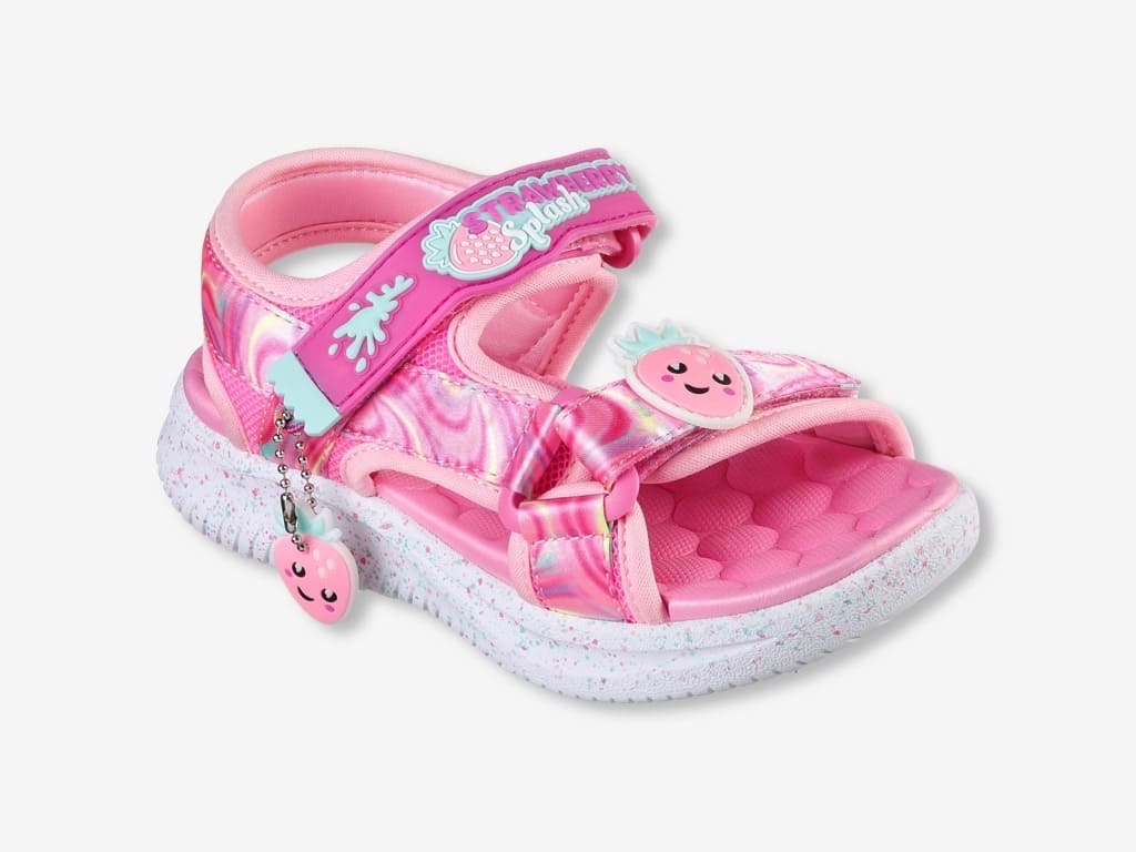 Skechers Sandal Splasherz della collezione bambina Skechers. Una scarpa da bambina della collezione Jumpsters . Dai libertร ai tuoi piedi con Skechers Jumpsters Sandal – Splasherz. Questo modello profumato Skechers Sweet Kickzโข presenta una tomaia in tessuto tecnico con stampa a vortici con plantare imbottito e chiusure a strappo. Un sandalo da bambina comodo e leggero.