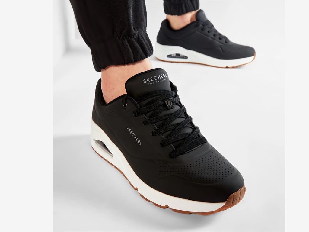 Scegli la scarpa da uomo Uno di Skechers Stand On Air in pelle di pregio, con fondo air-cooled e soffice suola memory foam. Si adatta allo stile sportivo di tutti i giorni, offrendo massimo comfort grazie alla sua leggerezza e morbidezza. Comfort senza rinunciare allo stile!