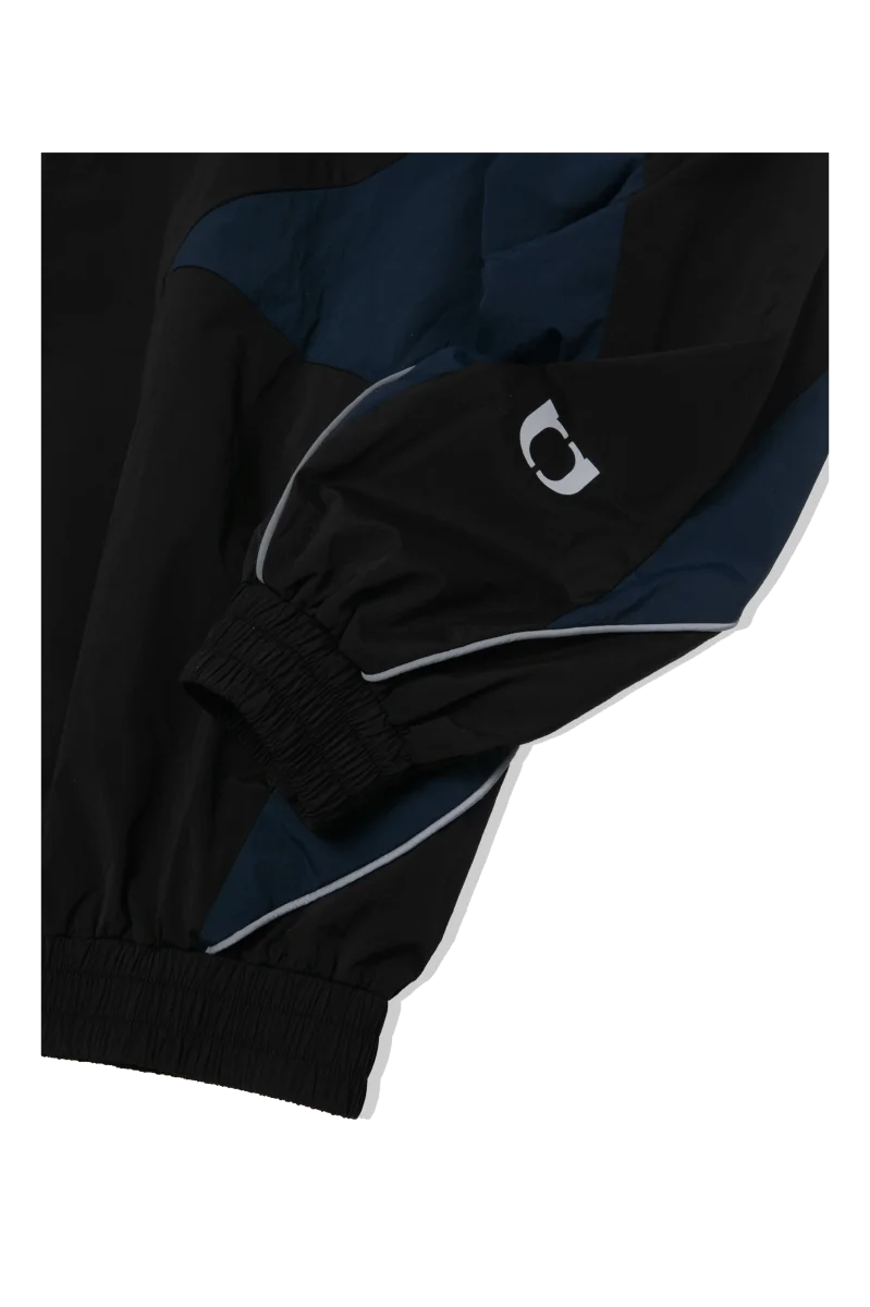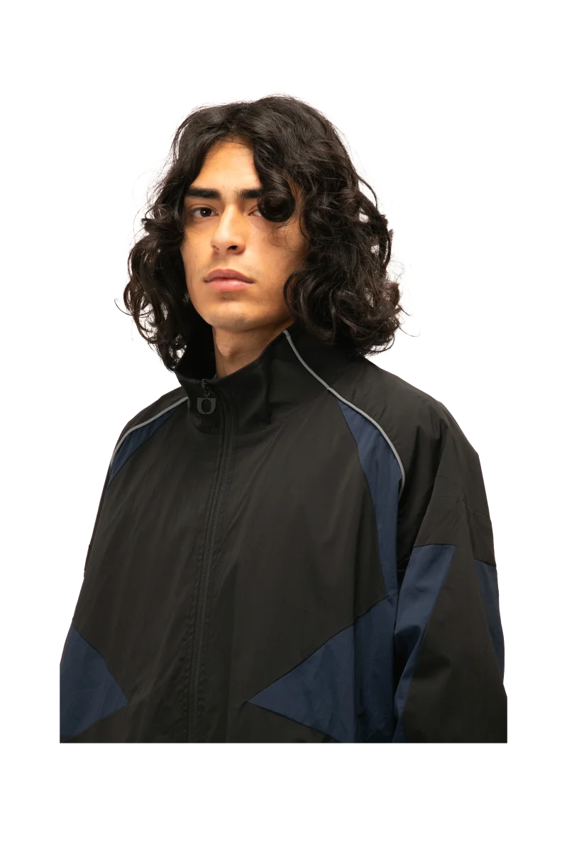 Questa giacca sportiva in nylon presenta intarsi a forma di stella, piping e loghi in materiale catarifrangente.