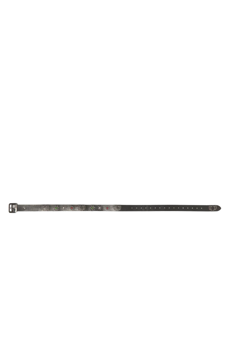 Questa cintura in pelle nera, nata dalla collaborazione tra One Block Down e HTC, รจ decorata con un artwork speciale realizzato a mano con borchie e strass. Il design riproduce il logo di One Block Down e un motivo che richiama i colori della bandiera italiana. Lunghezza: 95 cmLarghezza: 3.5 cm Composizione: 100% Pelle