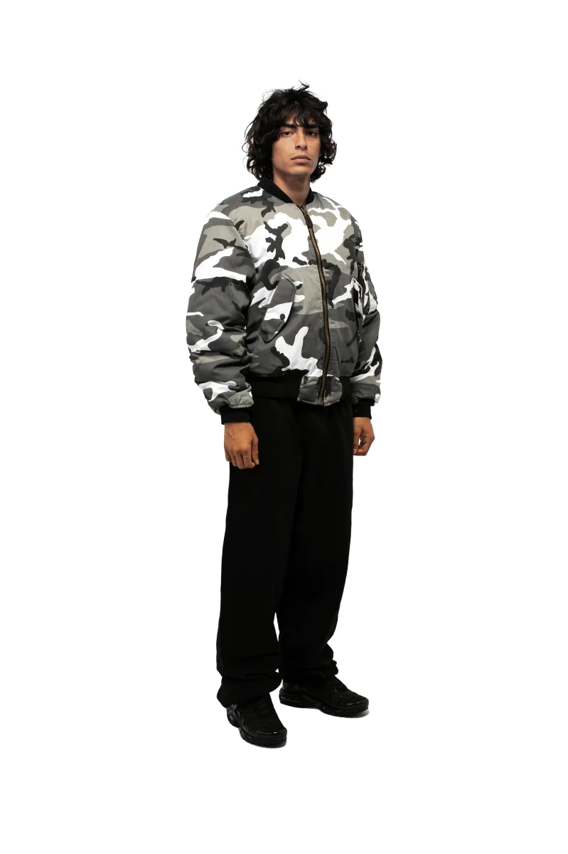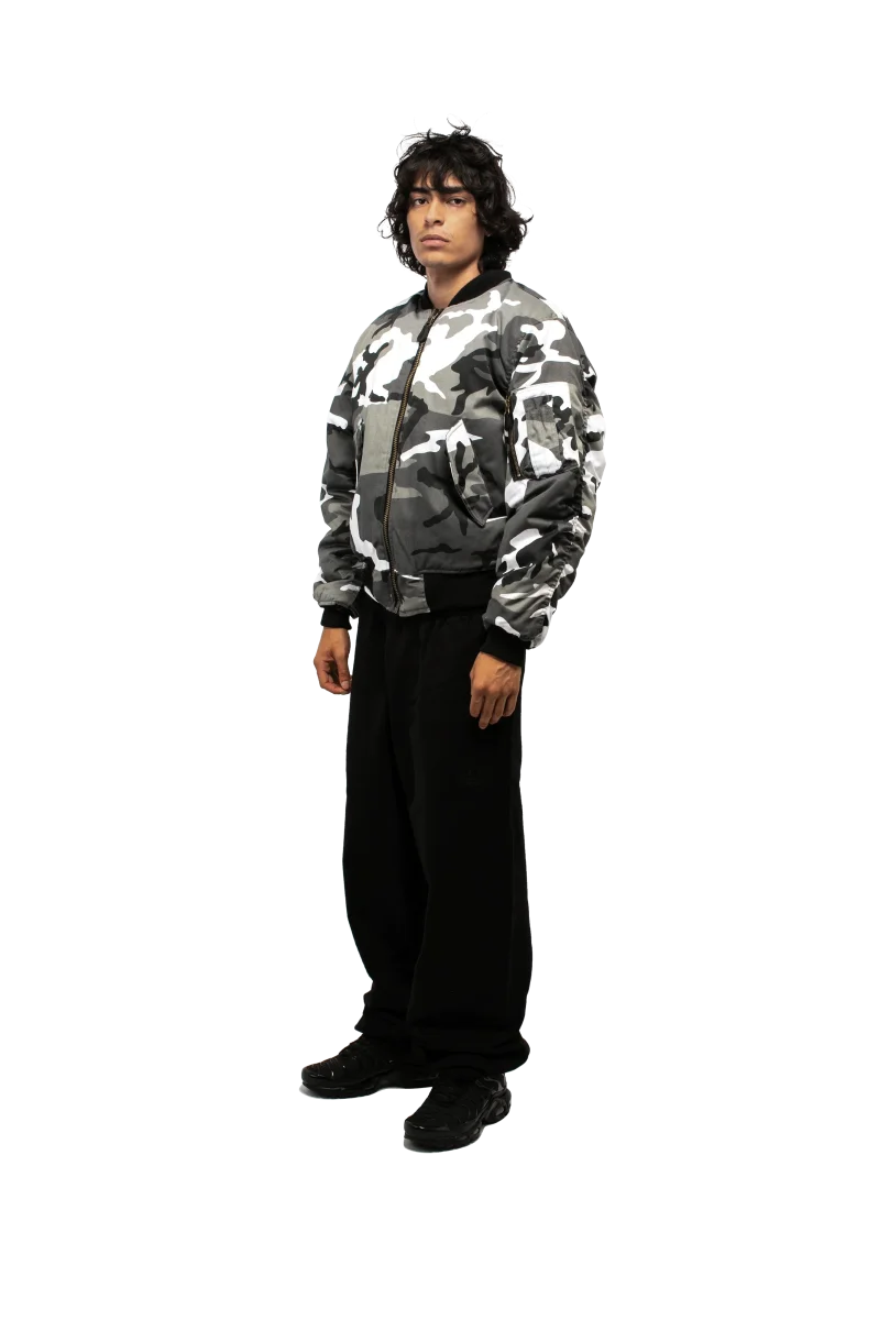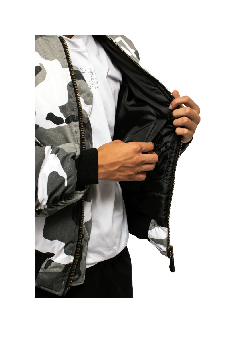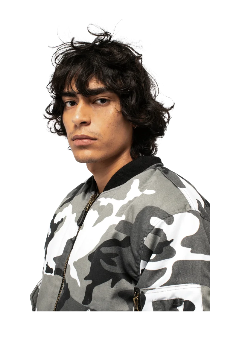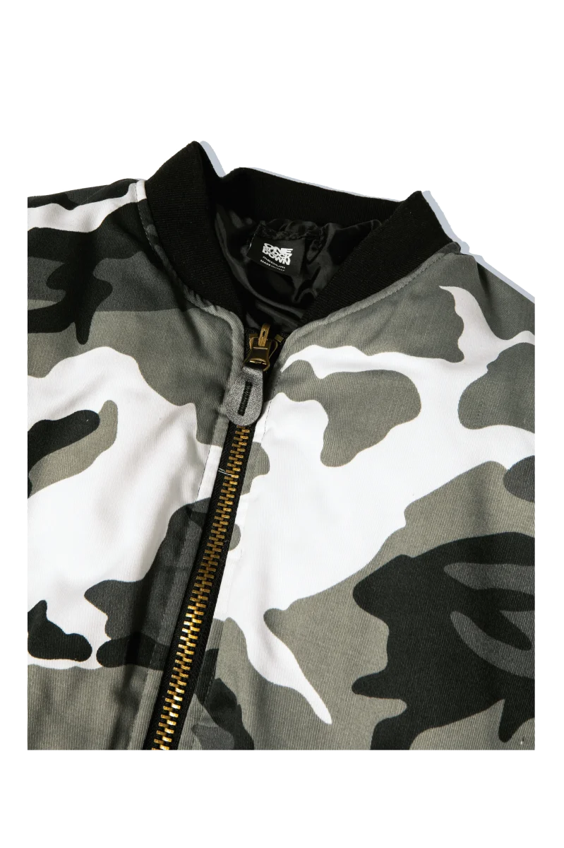 Questo bomber imbottito presenta una stampa camouflage all over, logo Link stampato sulla schiena, fit boxy, due tasche frontali, due tasche interne, tasca esterna su manica sinistra e vita e polsini regolabili.