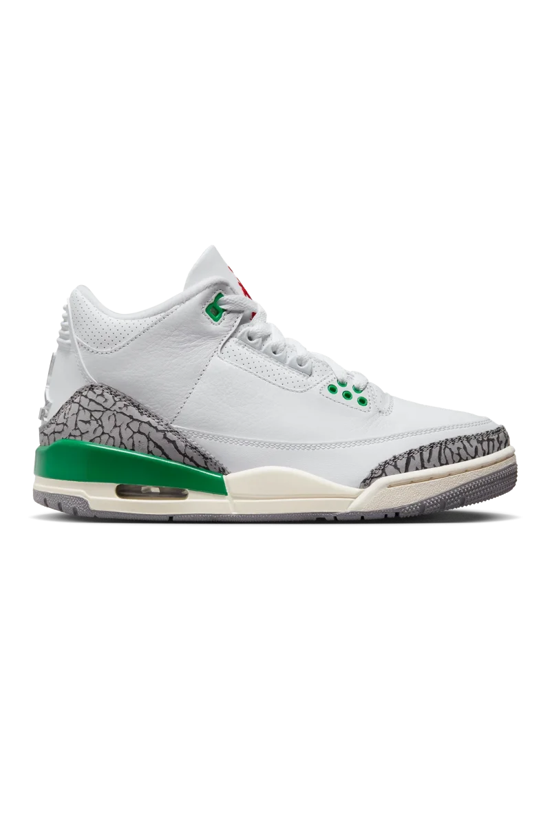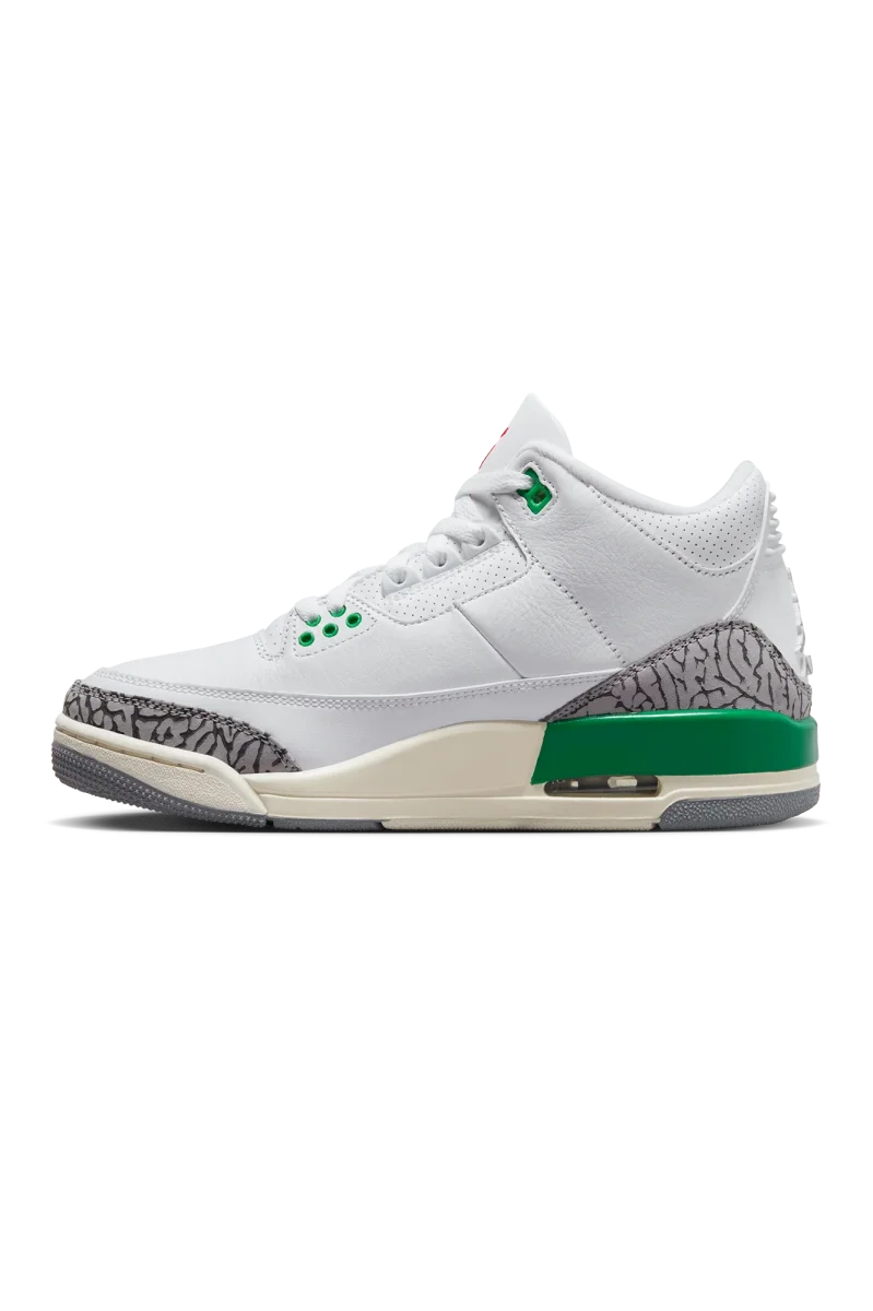 La colorway “Lucky Green” torna per dare un tocco di buon auspicio al modello AJ3 classico. I dettagli color trifoglio si abbinano alla stampa con effetto pelle di elefante originale sulla tomaia per un look straordinario.