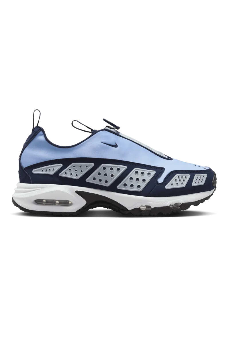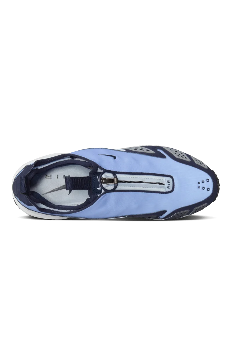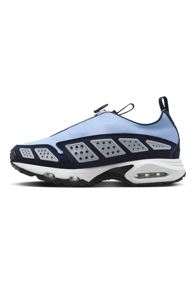 Questa Air Max SNDR “Blue Ice” รจ realizzata nelle tonalitร “Blue Ice”, “Blue Whisper”, “Obsidian”, bianco e nero. La tomaia รจ realizzata in neoprene leggero, mentre le sovrapposizioni in “Obsidian” aggiungono struttura e stile. I pannelli in TPU traforati lungo i lati conferiscono alla scarpa un aspetto traspirante e futuristico. La chiusura a zip al centro rende omaggio all’esclusivo sistema di chiusura della Air Max SNDR originale. Sotto il piede, le unitร Air visibili sia nel tallone che nell’avampiede garantiscono un’ammortizzazione superiore. La suola in gomma resistente assicura trazione e sostegno per l’uso quotidiano. Il marchio Swoosh minimalista sul lato e sulla punta mantiene il design pulito e moderno.